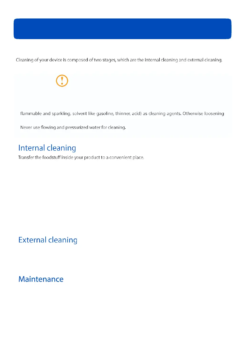 Before the internal cleaning, wait until the temperatures of the internal parts of your product reaches to