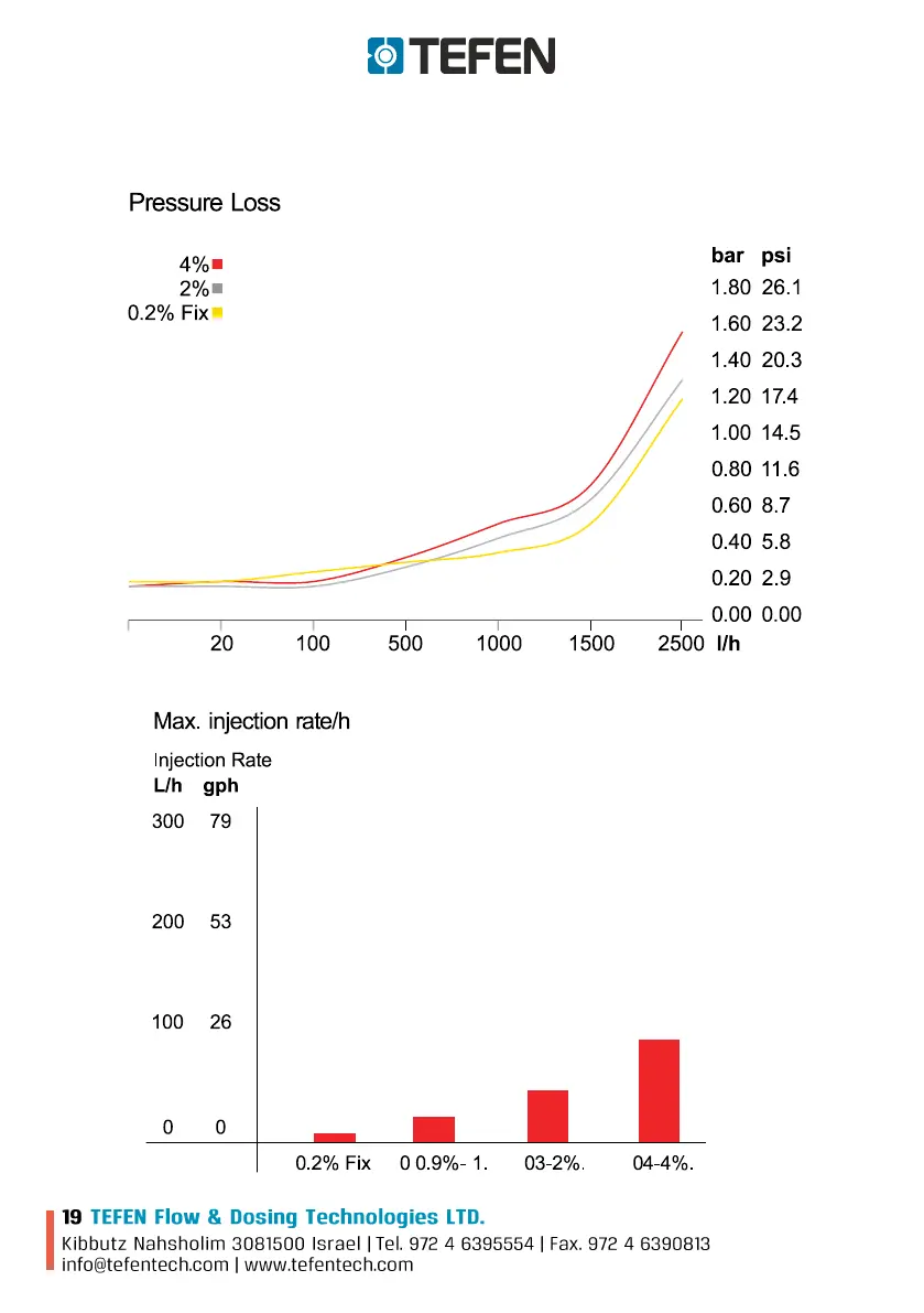 tefen MixRite 2.5 - Specifications; Pressure Loss Charts; Maximum Injection Rate