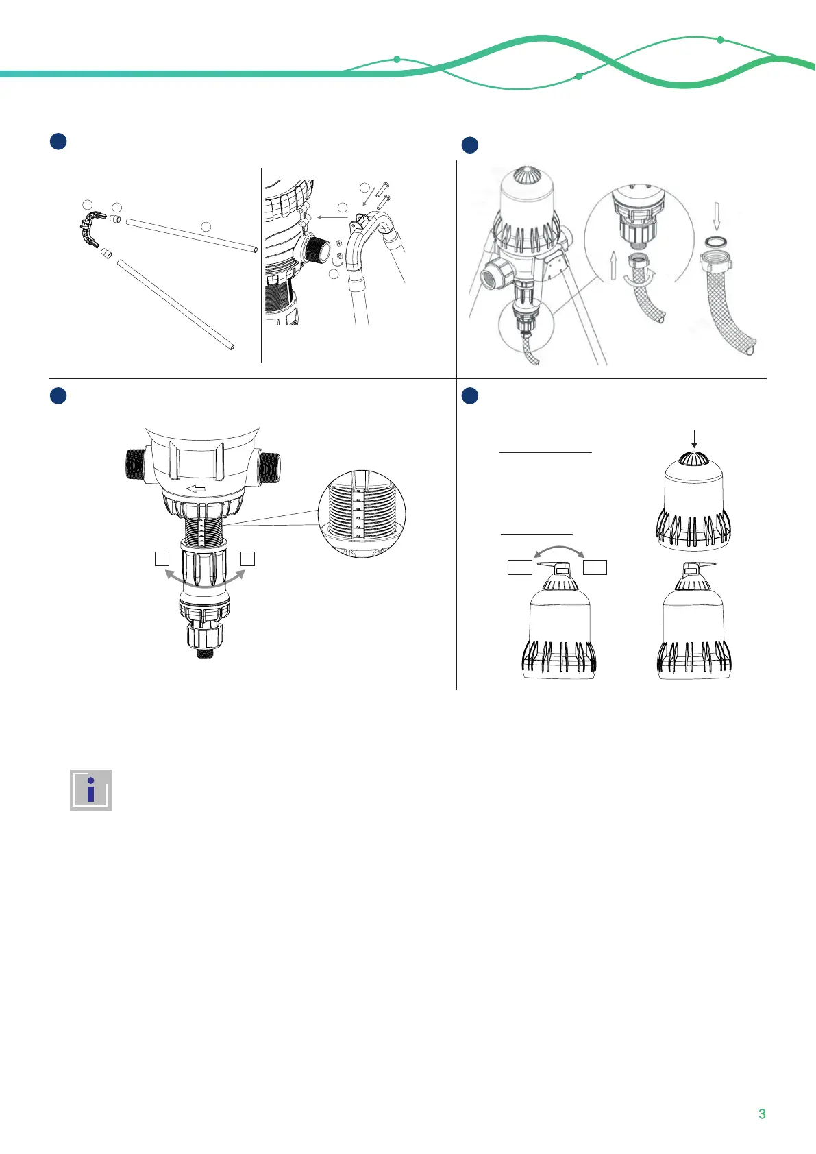 Regularly clean the water filter at the pump inlet and the additive suction filter.