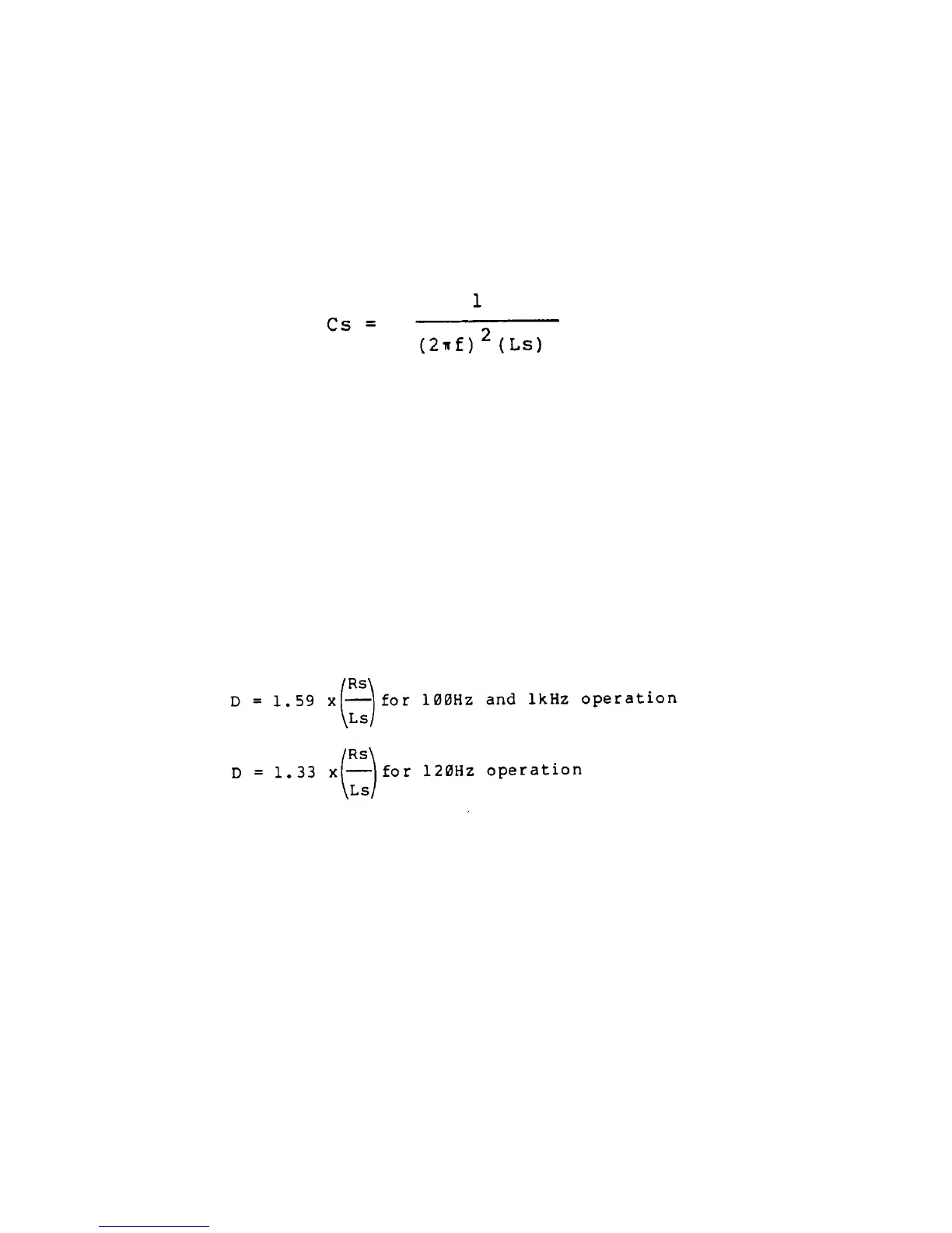 Dissipation factor (D). The D of large value electrolytic capacitors can be determined using the Ls and Rs