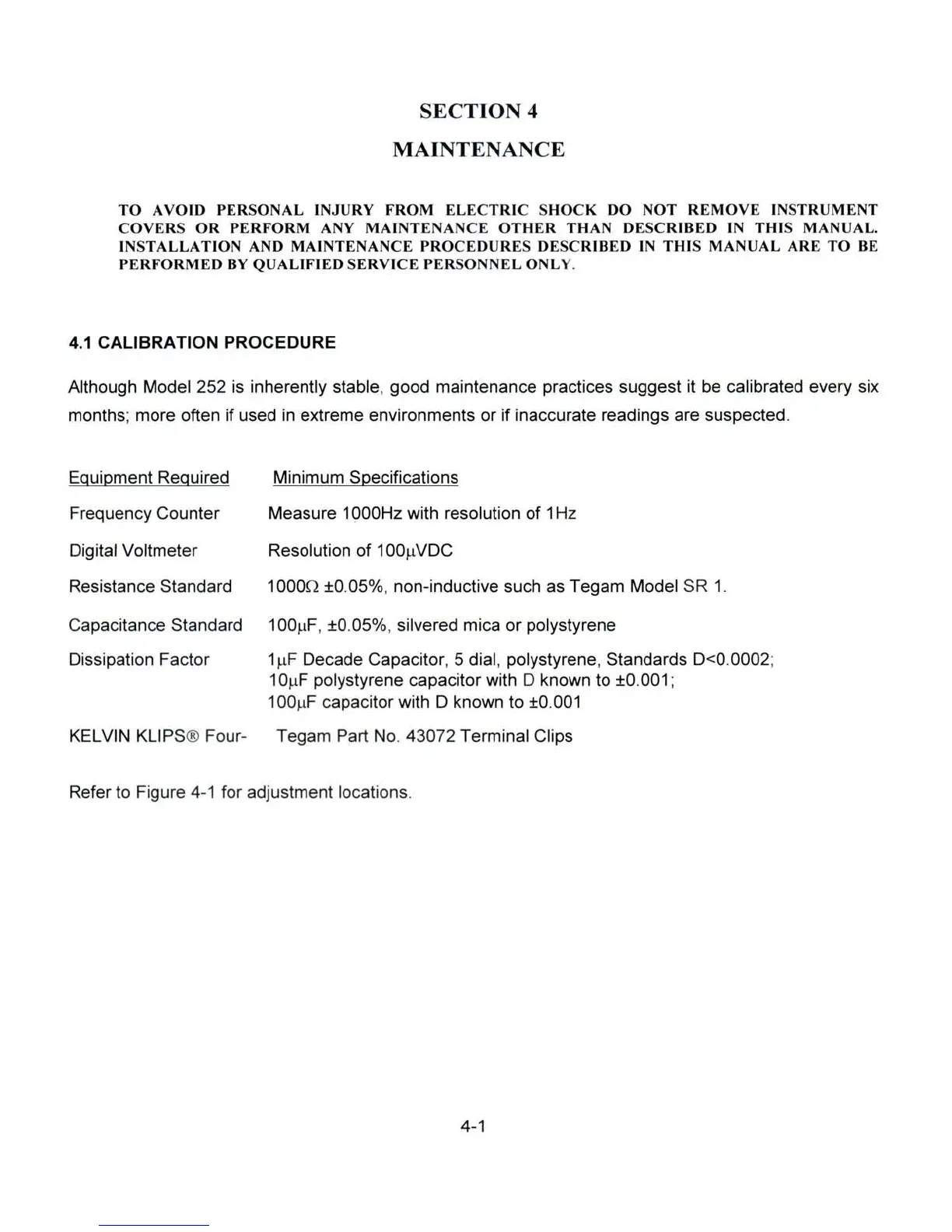 Tegam 252 - Instrument Maintenance; Calibration Procedure