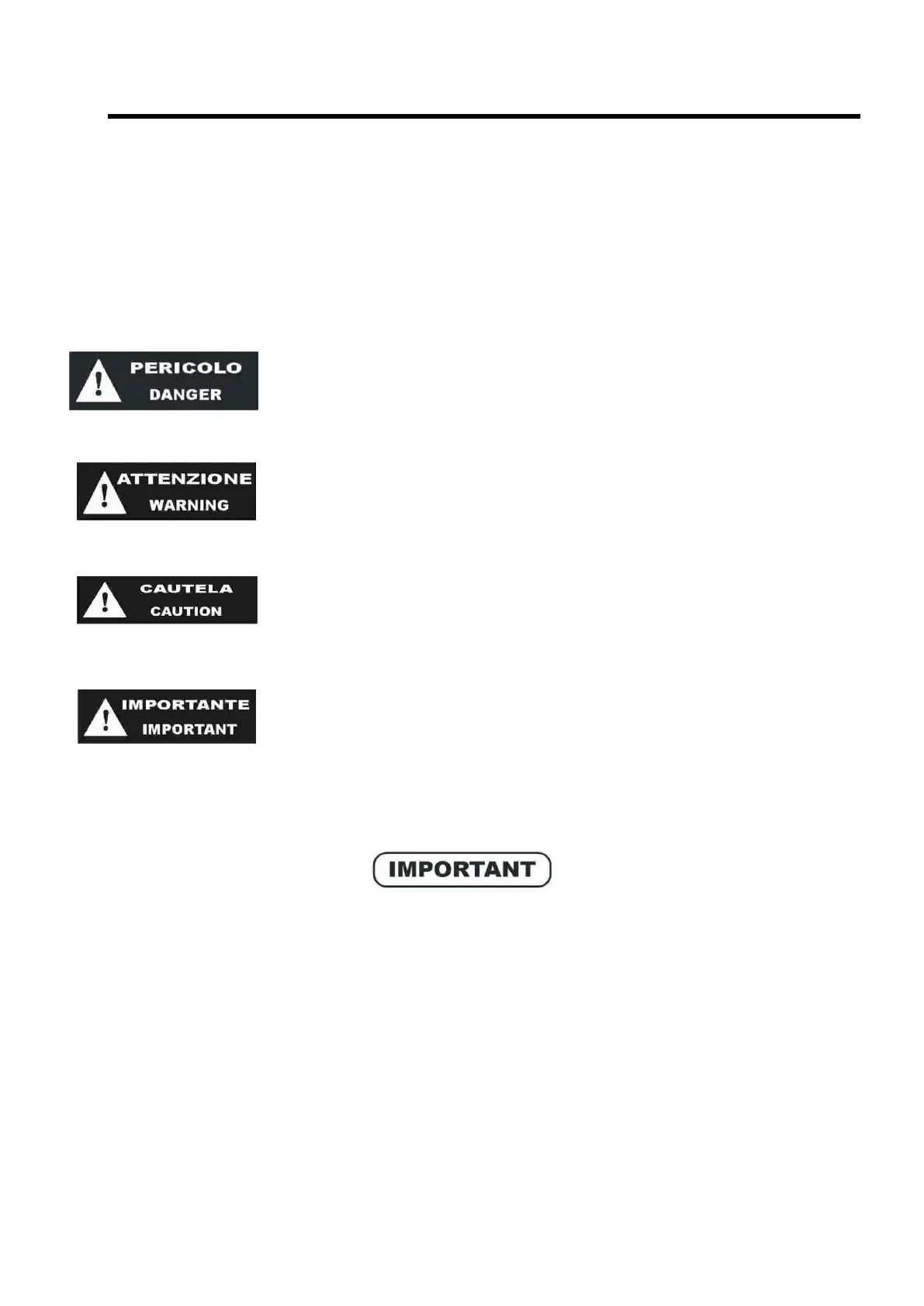 This manual contains safety warnings represented by symbols indicating three different levels of
