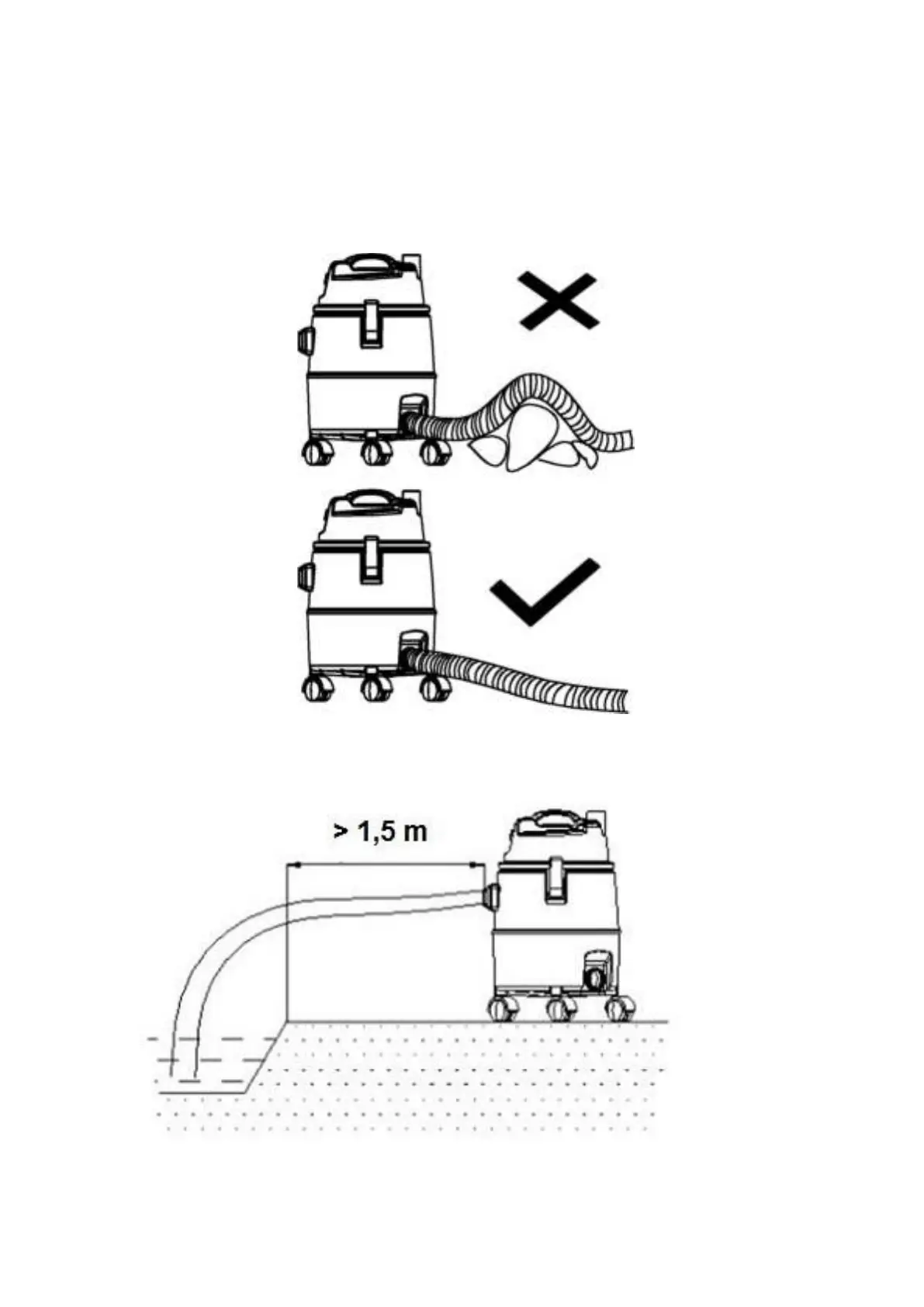 Keep drain hose flatness, no obstacle.