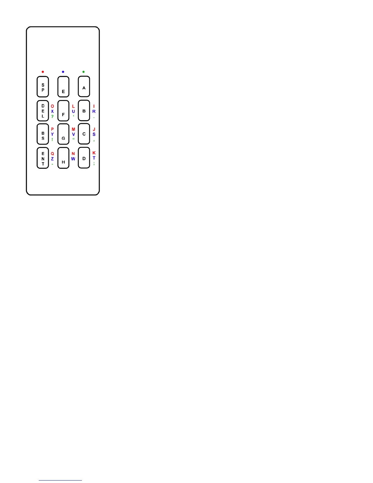 twelve-key layout, you will find four keys (labeled SP, DEL, BS, and ENT) arranged in a column