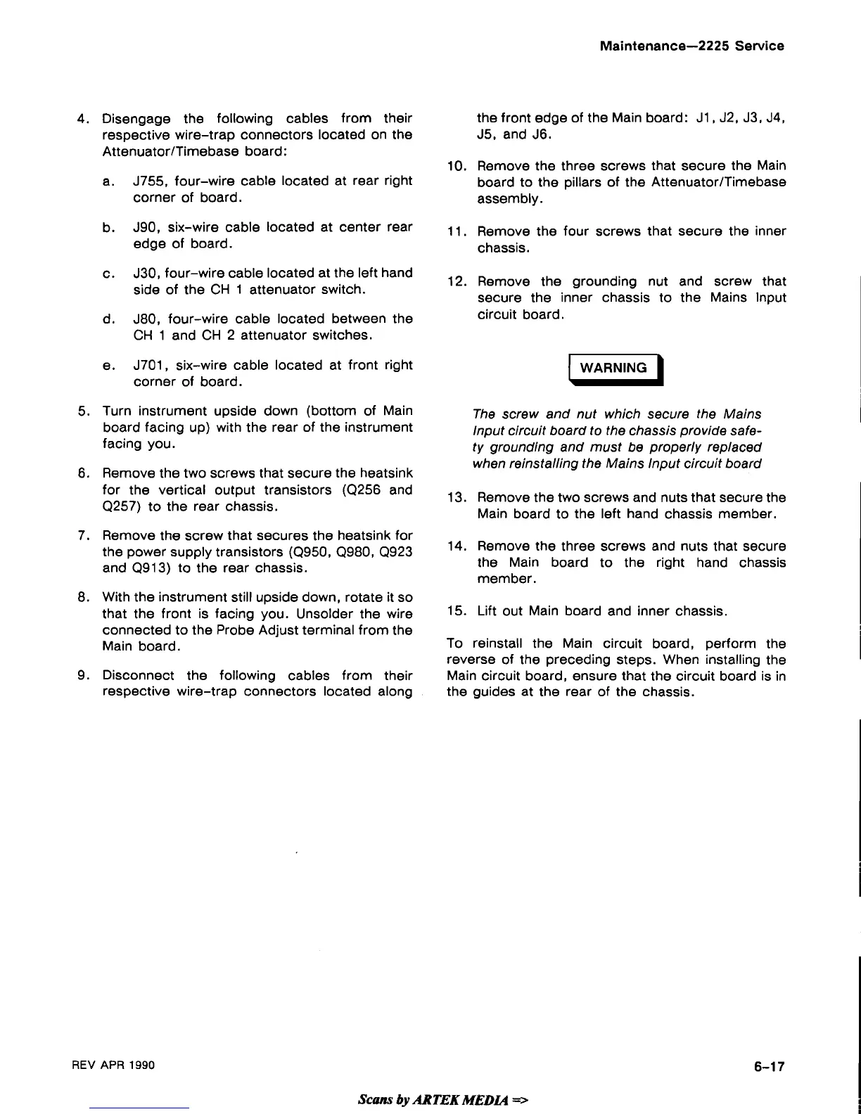 when reinstalling the Mains lnput circuit board