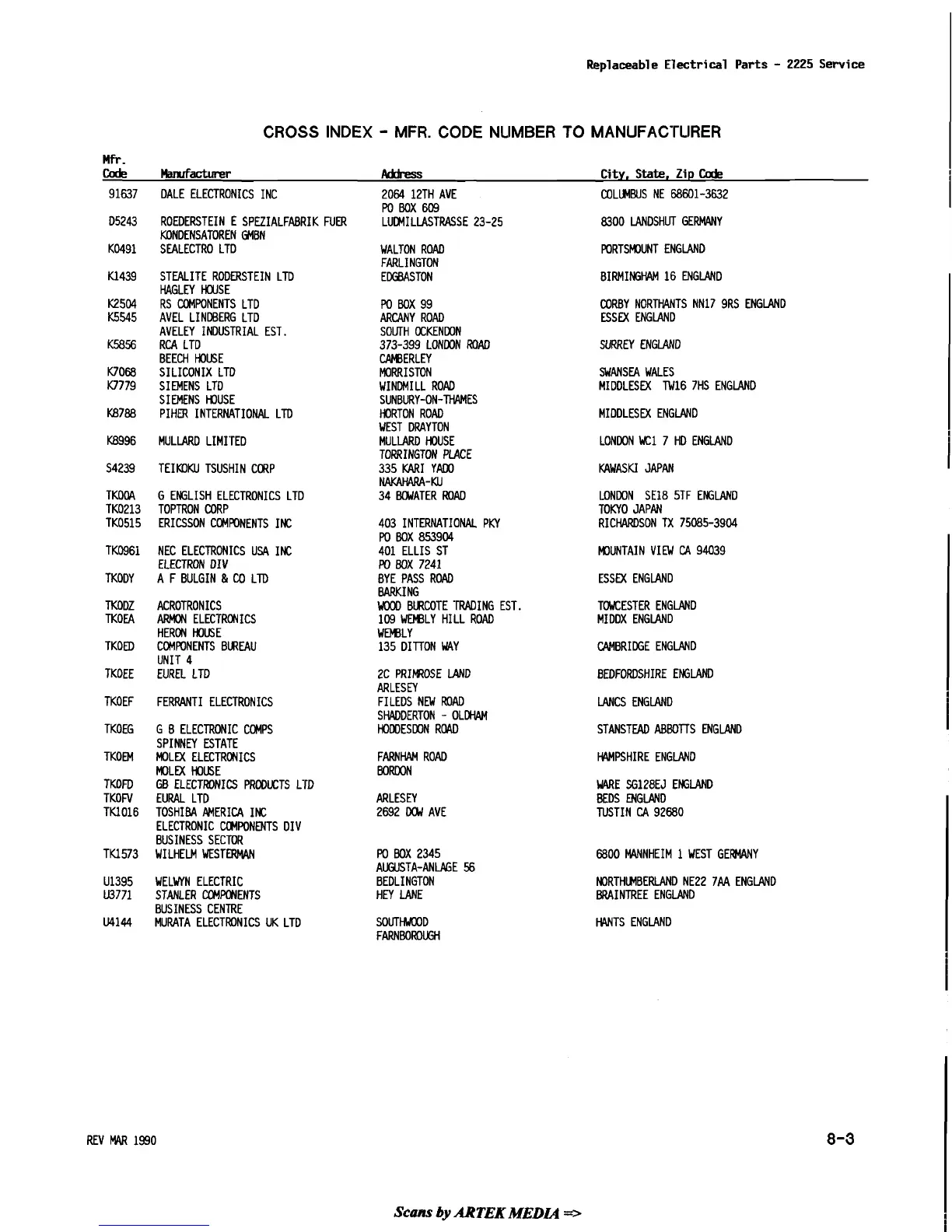 MFR. CODE NUMBER TO MANUFAC'TLIRER
