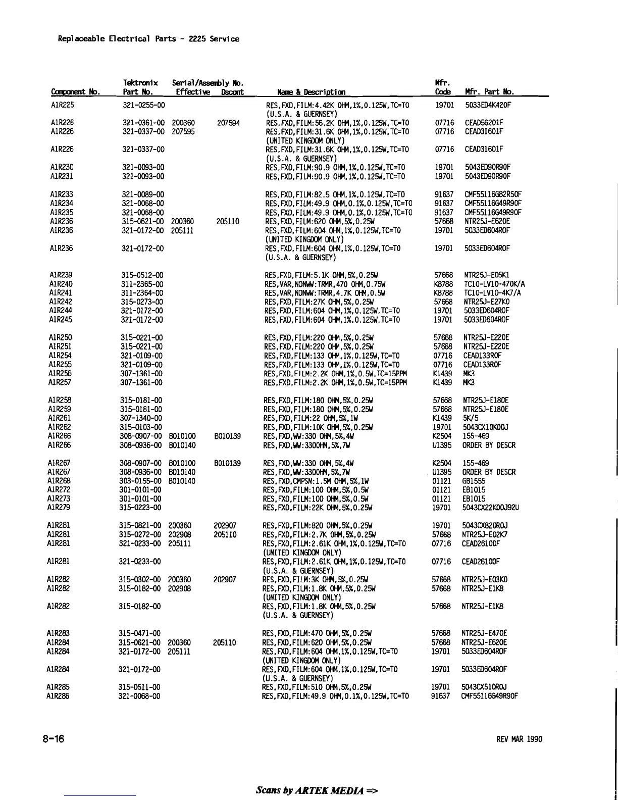 AIR225 321-0255-00 RES.FXD,FILM:4.42K OM,1%.0.125W,TC=TO 19701 5033ED4K420F