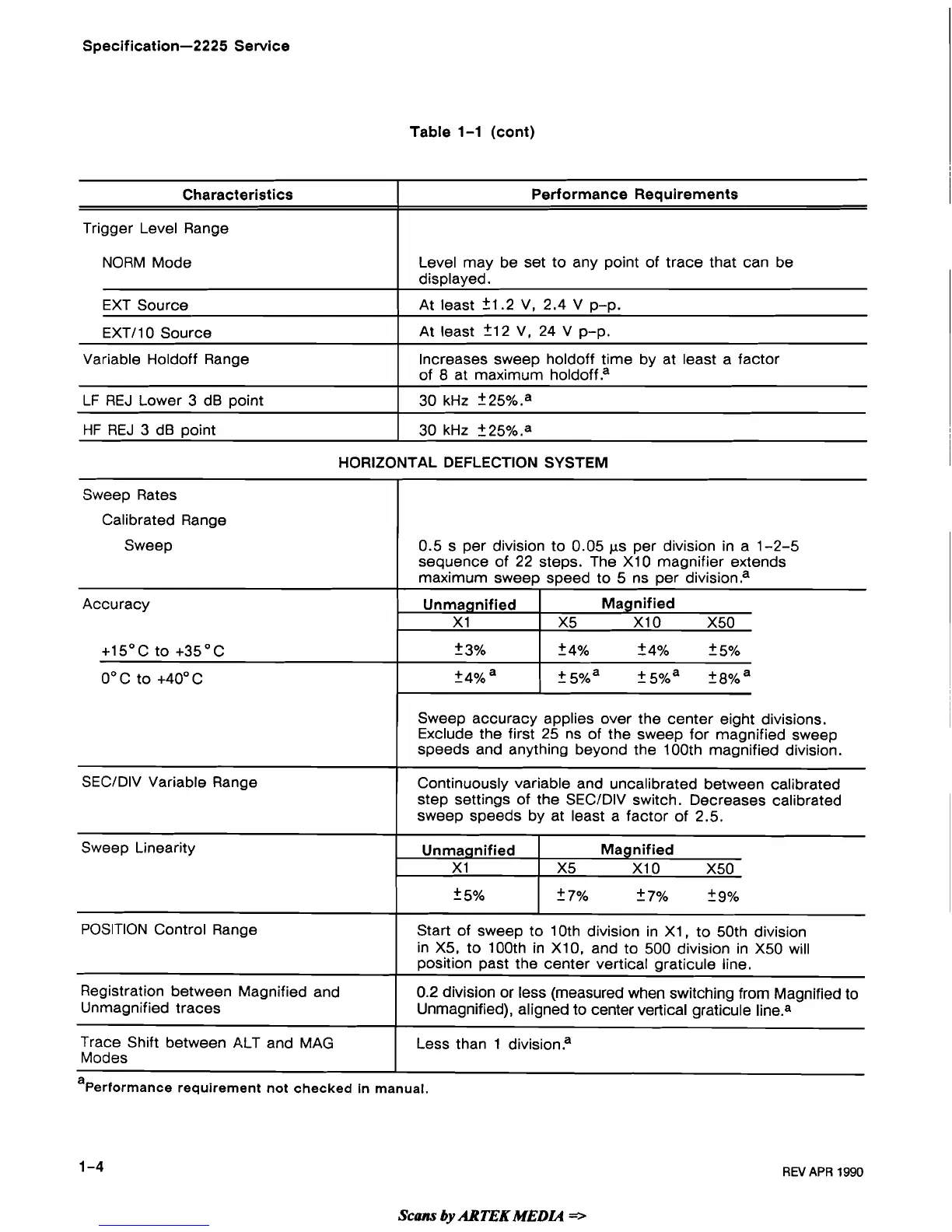 Performance requirement not checked in manual.