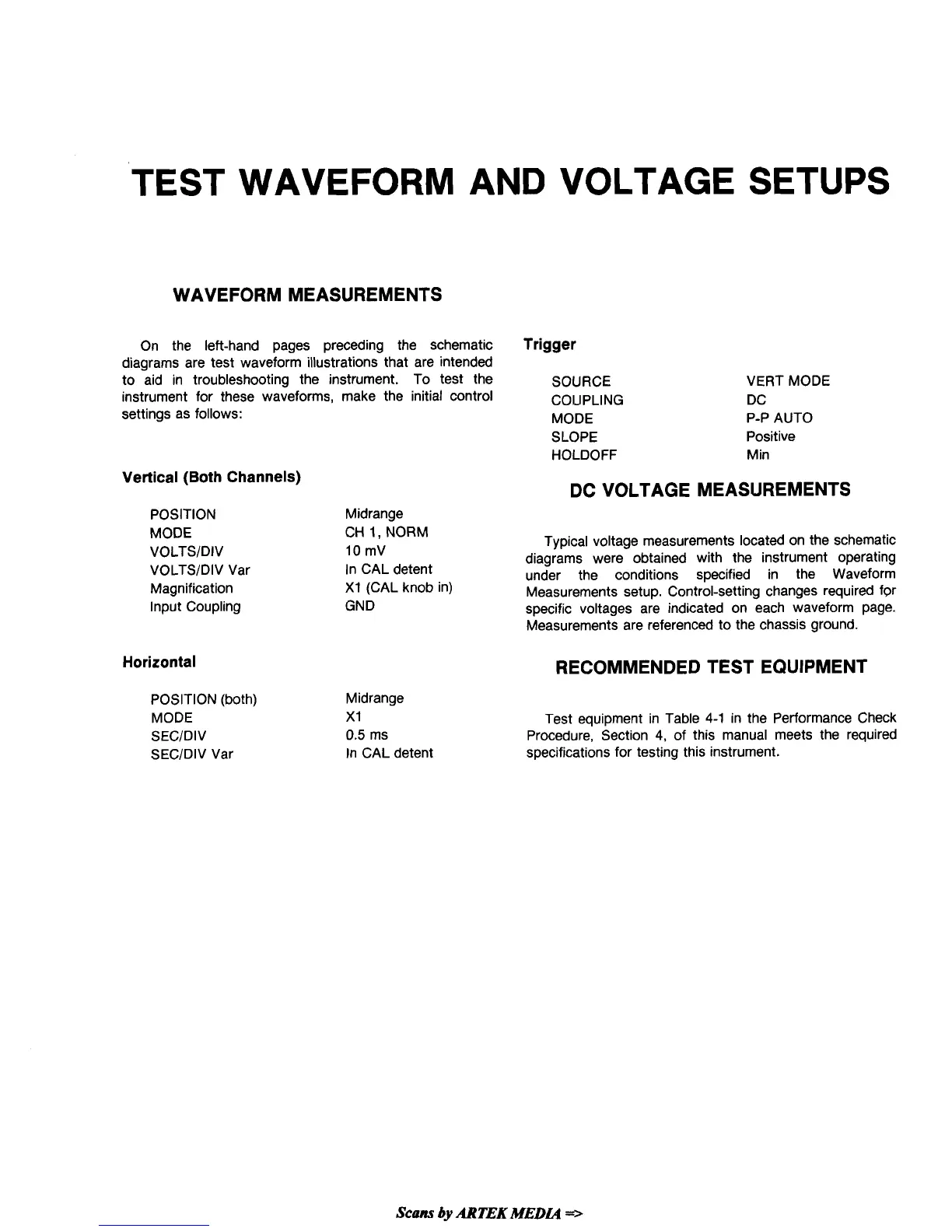 TEST WAVEFORM AND VOLTAGE SETUPS