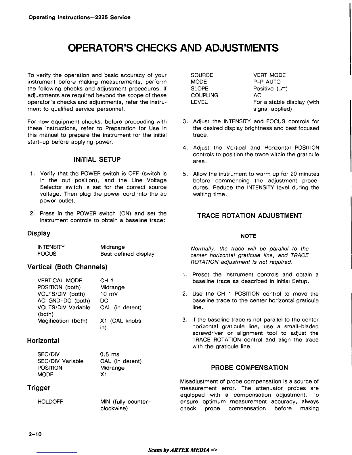 OPERATOR'S CHECKS AND ADJUSTMENTS