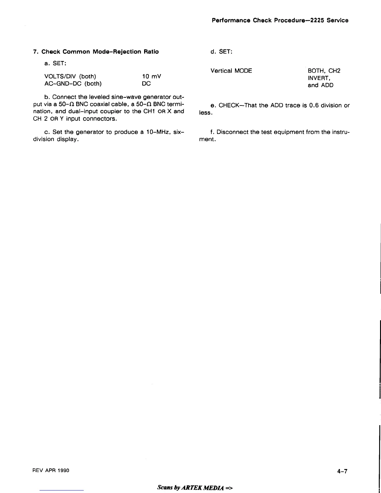 Performance Check Procedure-2225 Service