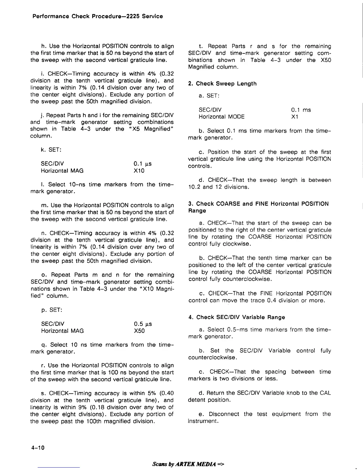 the sweep with the second vertical graticule line. binations shown in Table 4-3 under the X50