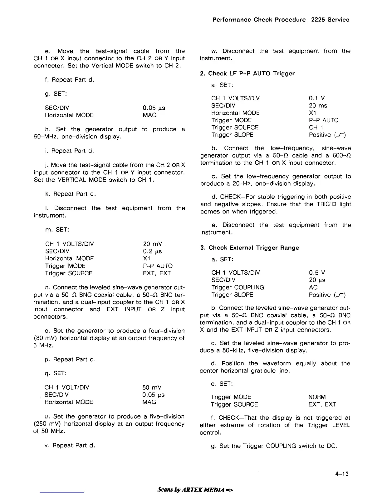 e. Move the test-signal cable from the w. Disconnect the test equipment from the