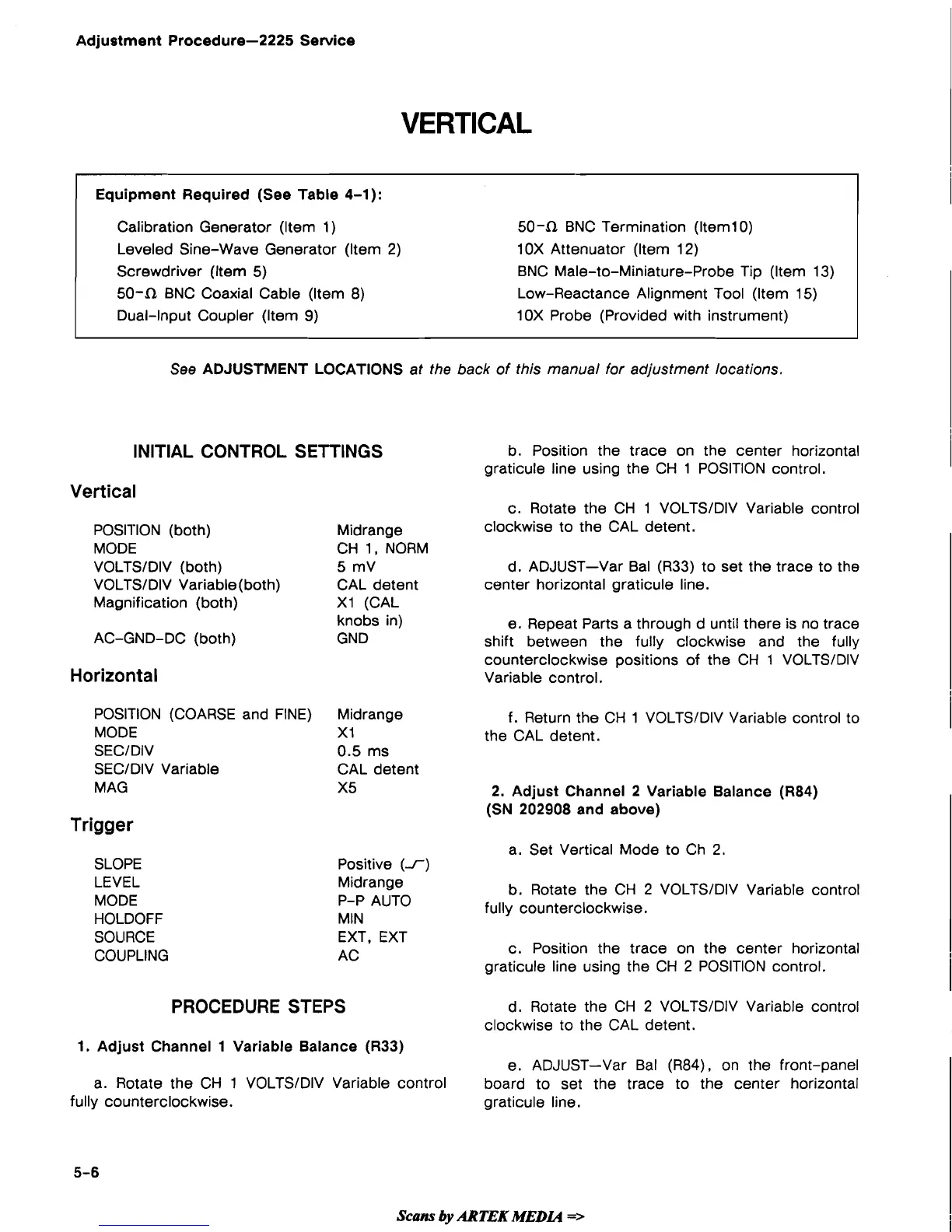 Adjustment Procedure-2225 Service