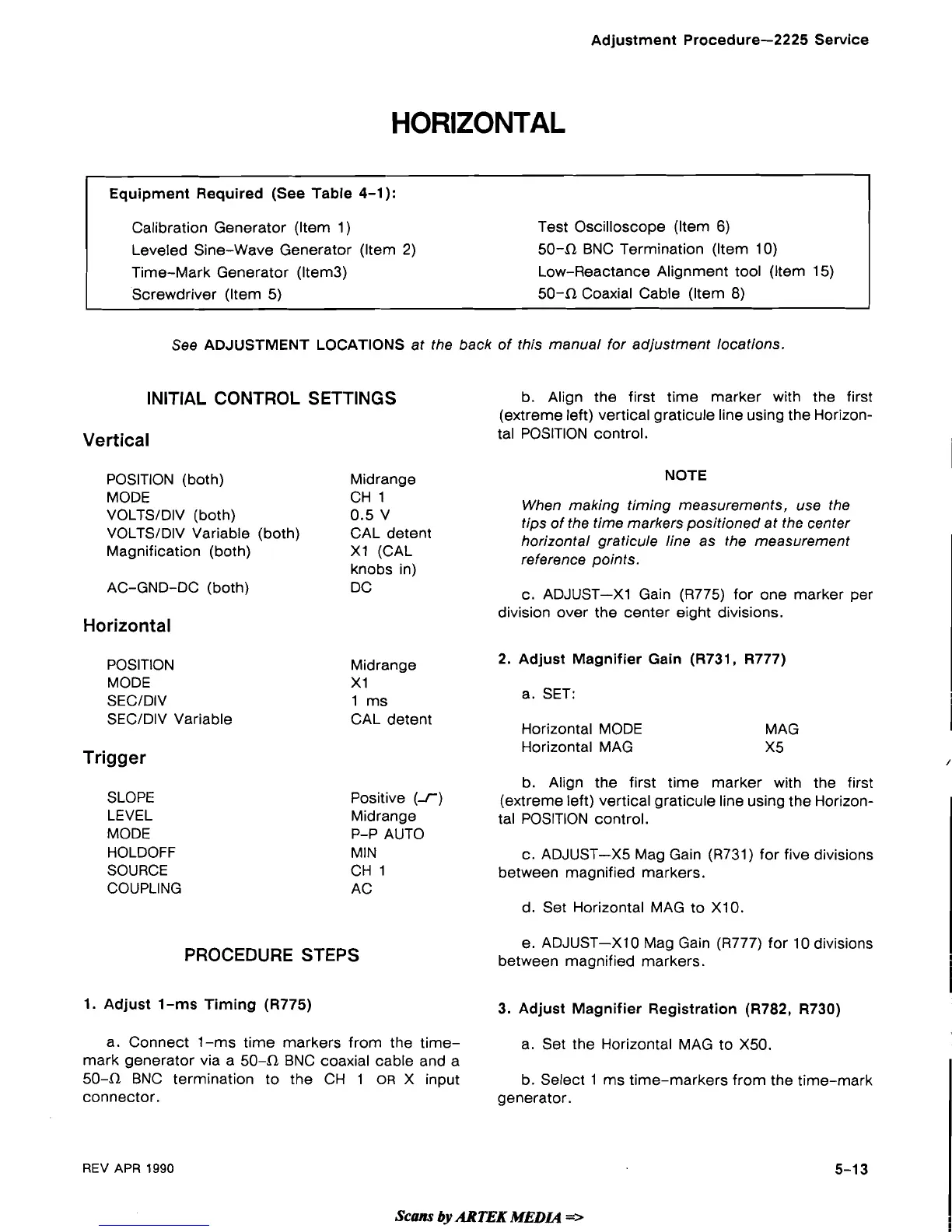 e. ADJUST-XI0 Mag Gain (R777) for 10 divisions