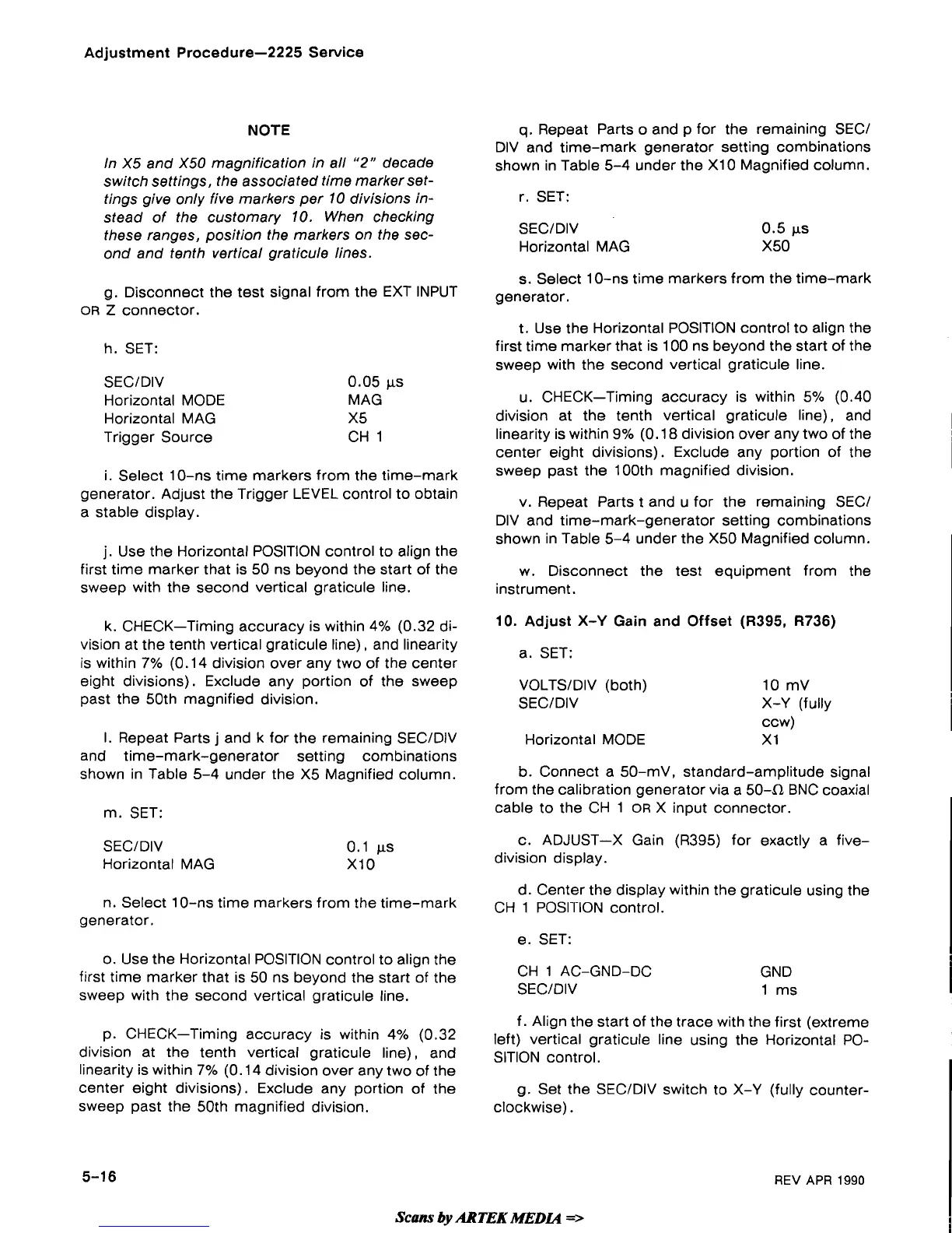 g. Set the SECIDIV switch to X-Y (fully counter-