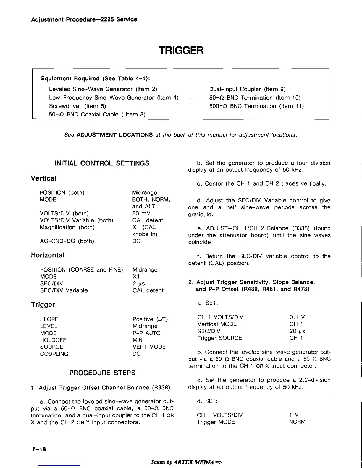 Adjustment Procedure-2225 Service