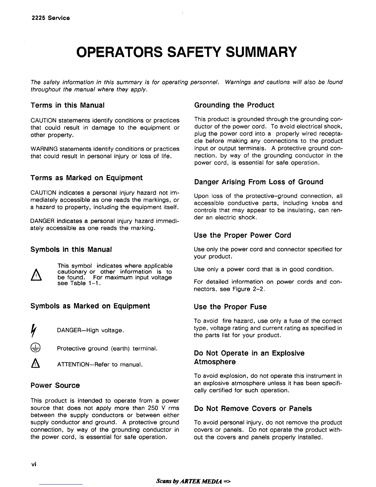 OPERATORS SAFETY SUMMARY