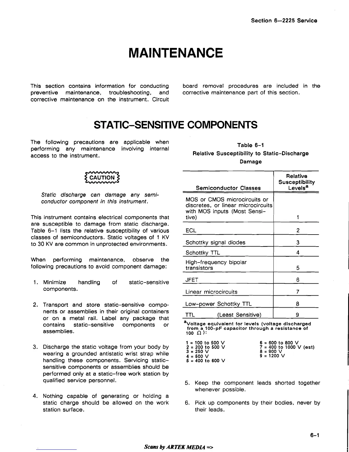 Table 6-1 lists the relative susceptibility of various