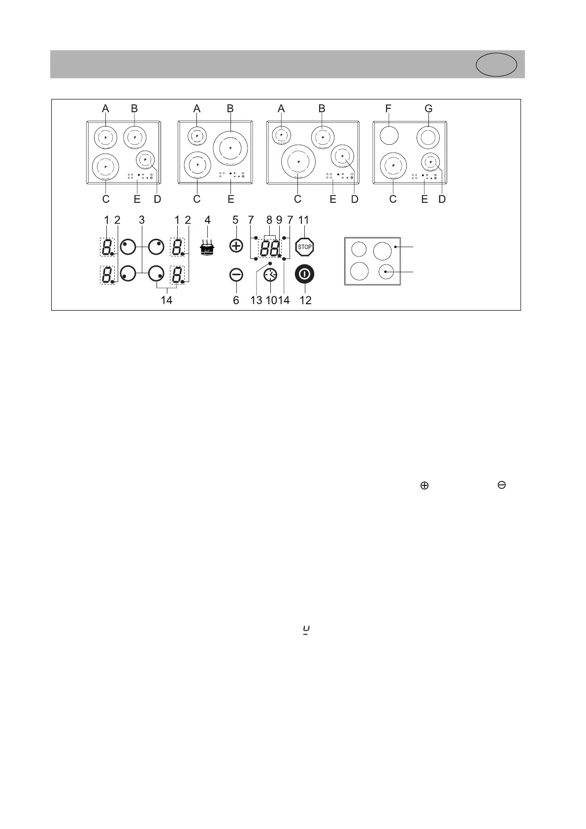 nenauswahl-Taste wird eine Kochzone ausgewählt, für die