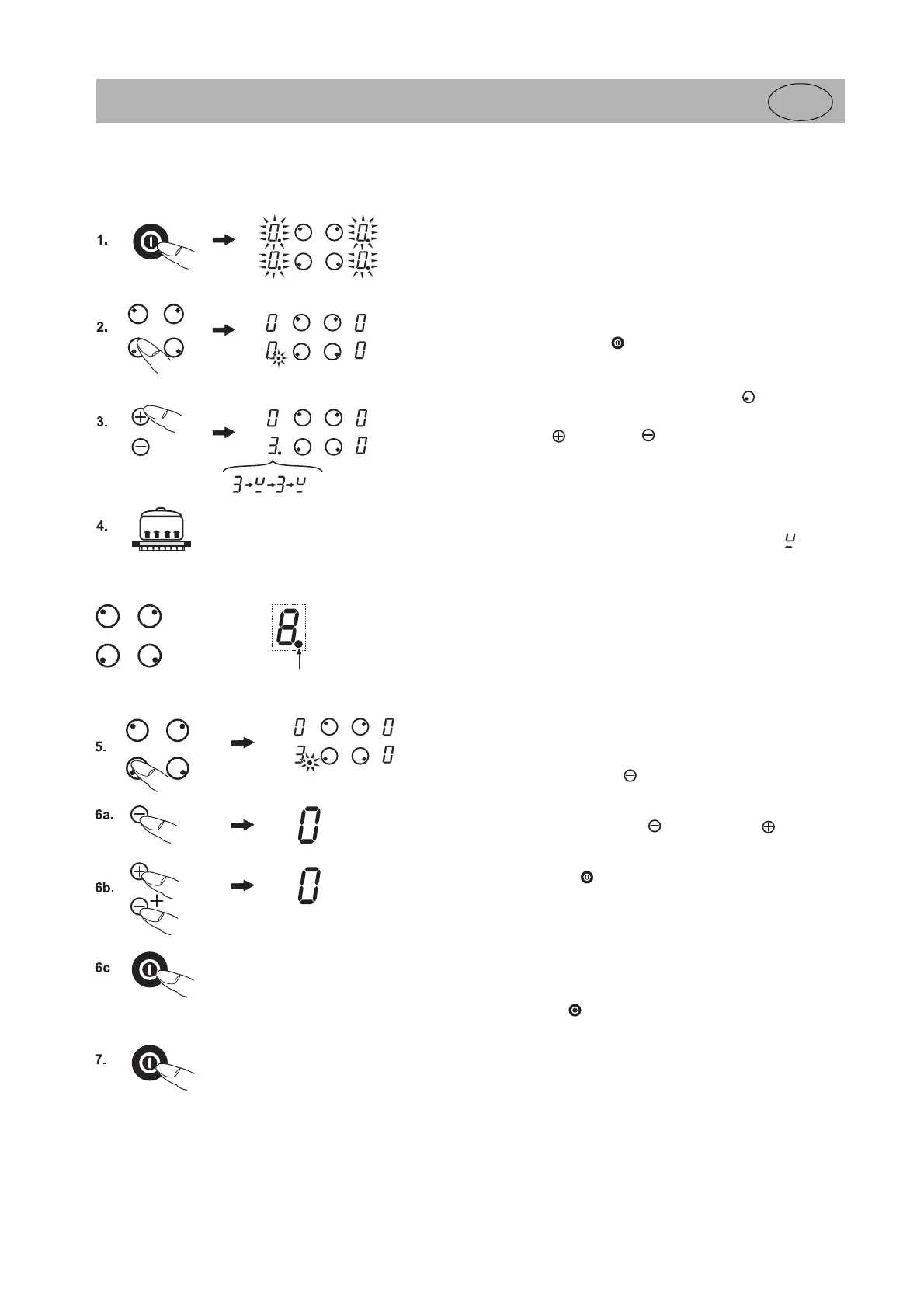5. Gereedheidspunt van de gekozen kookzone moet branden. Hiervoor ev.