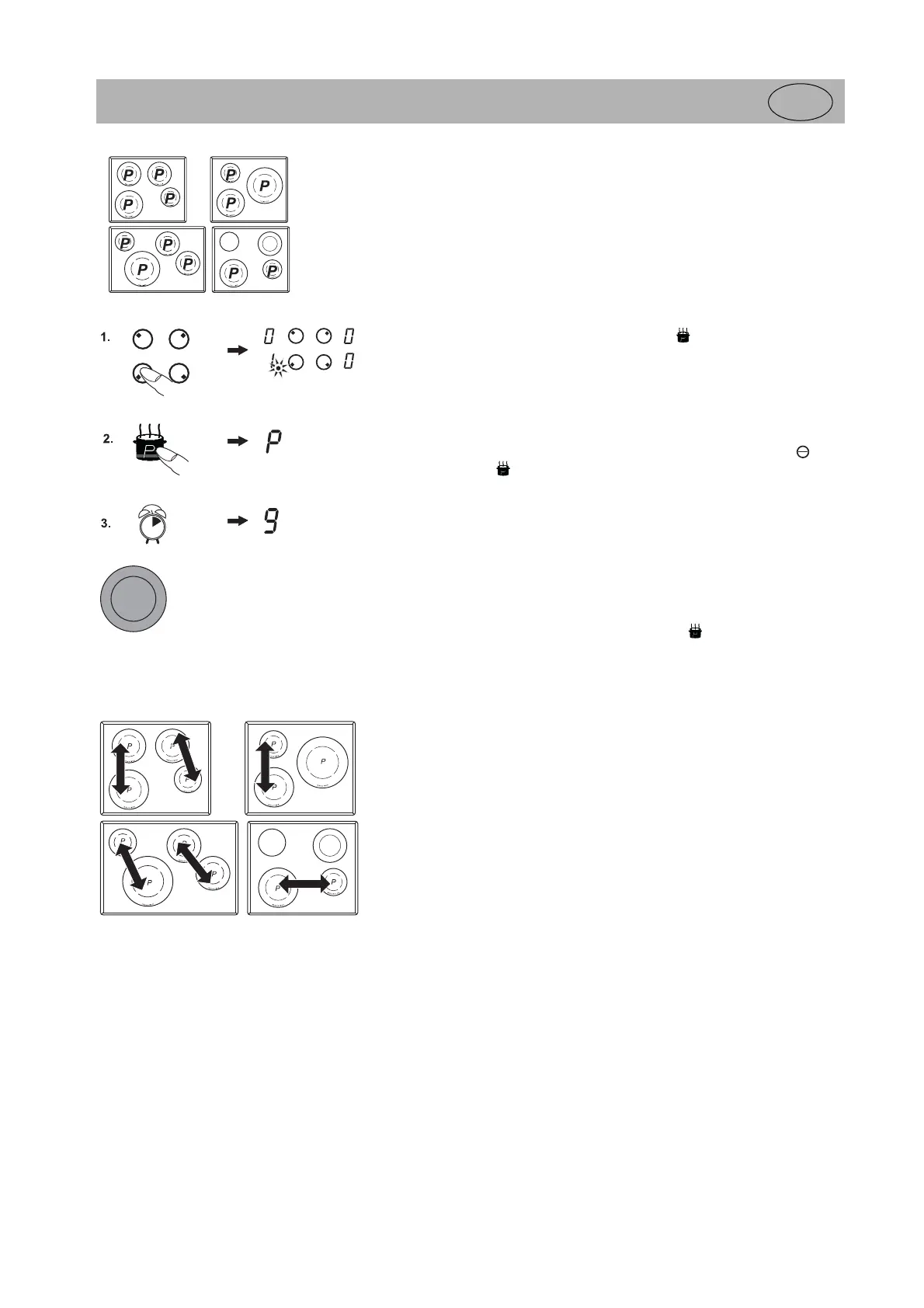 1. Een kookzone moet ingeschakeld zijn. Het gereedheidspunt van de