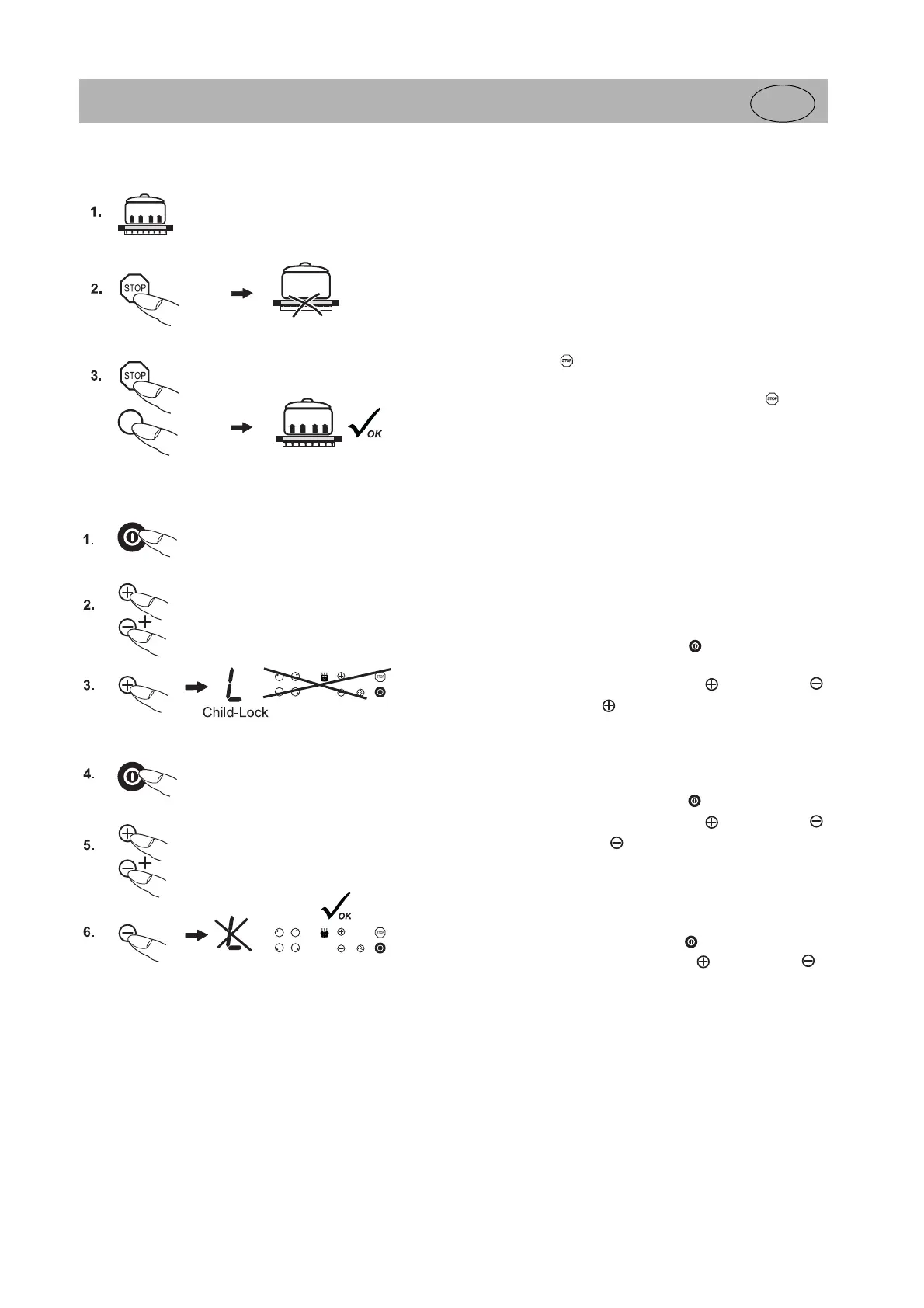 (blocco bambini); i comandi sono bloccati e il piano di cottura si disattiva.