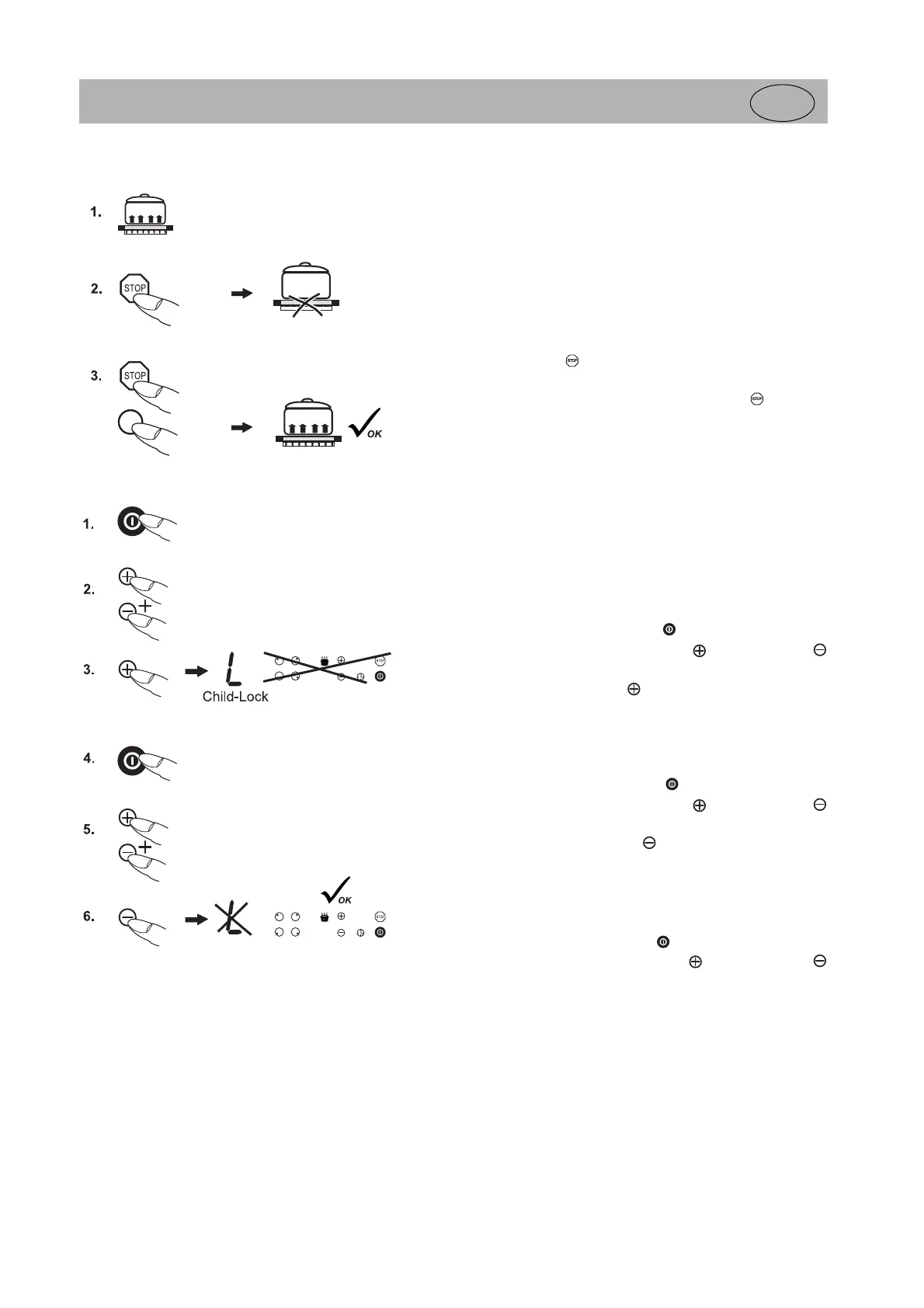 Child-Lock; el manejo está bloqueado y la encimera se desconecta.