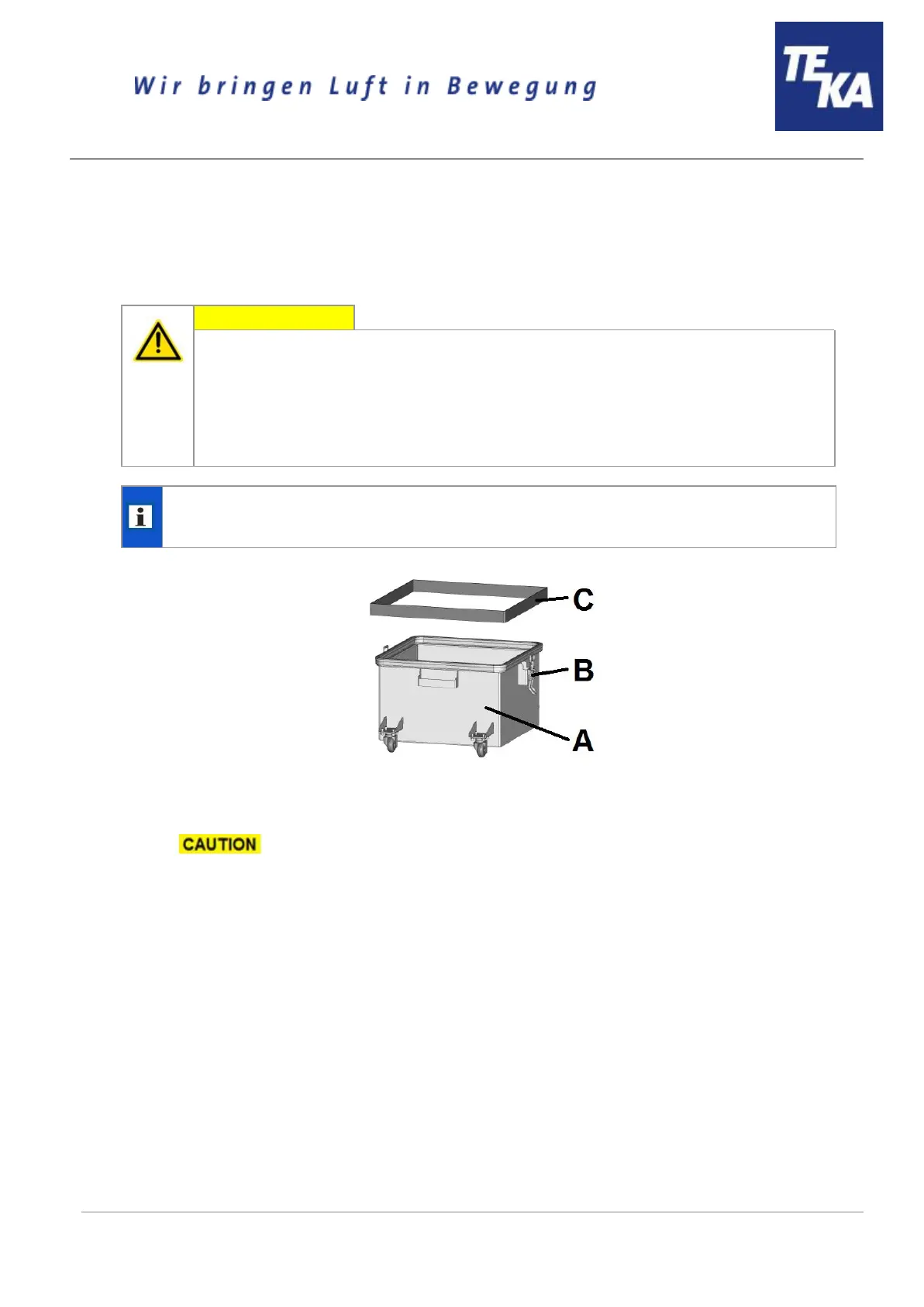Before emptying the dust collecting tank hold ready an appropriate container (e.g. PE bag). The