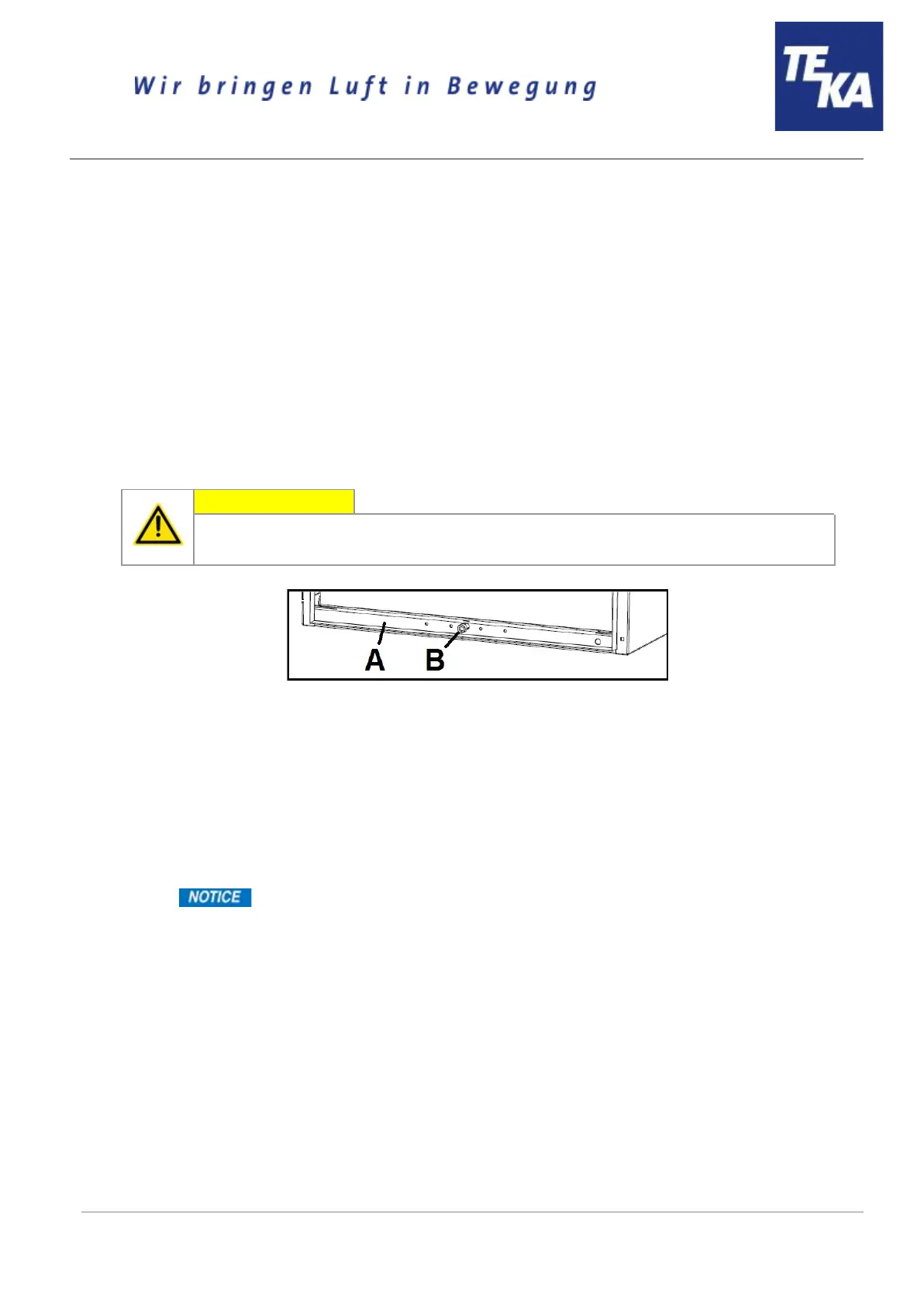 ● Lower the lifting device (A) by turning the clamping screw (B). Therefore, use the hexagon key