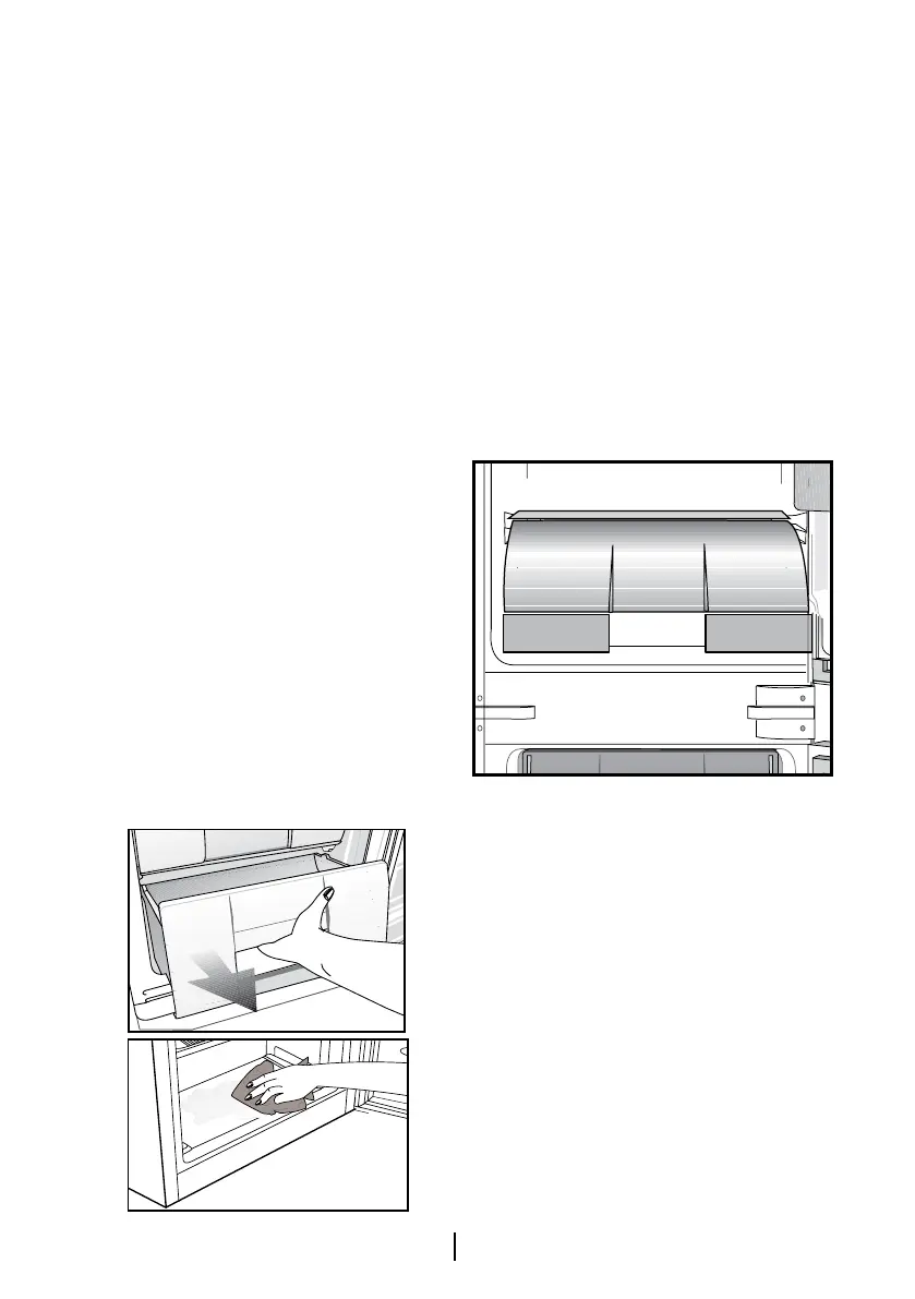 am Boden des Tiefkühlbereichs ansammelt,