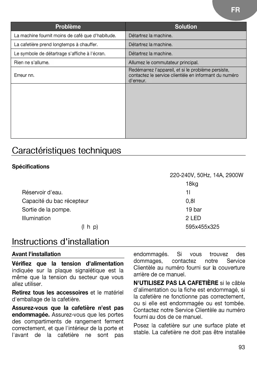 de purge, deux ou trois fois. Si cette erreur persiste,