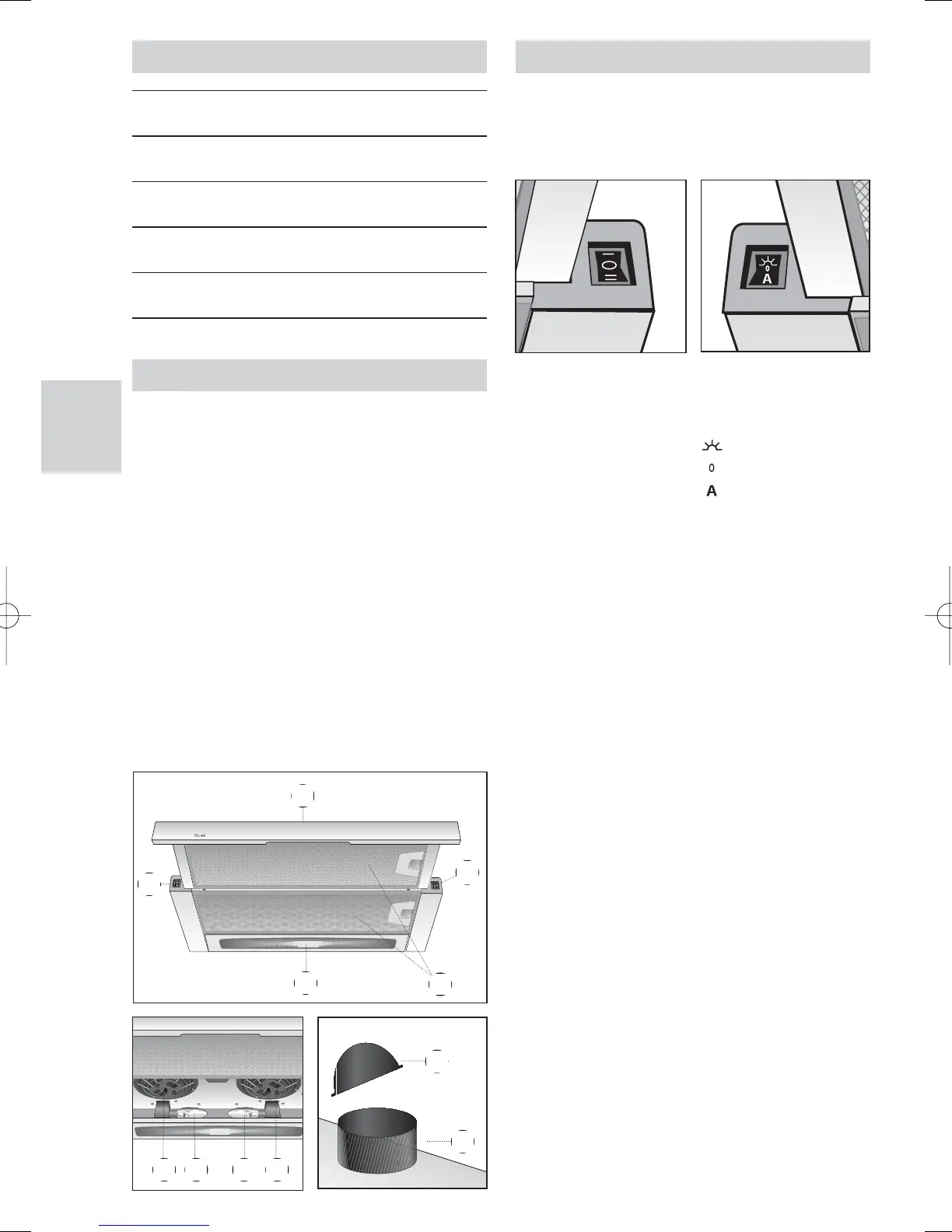 en position "A", la lumière de la hotte s'allu-