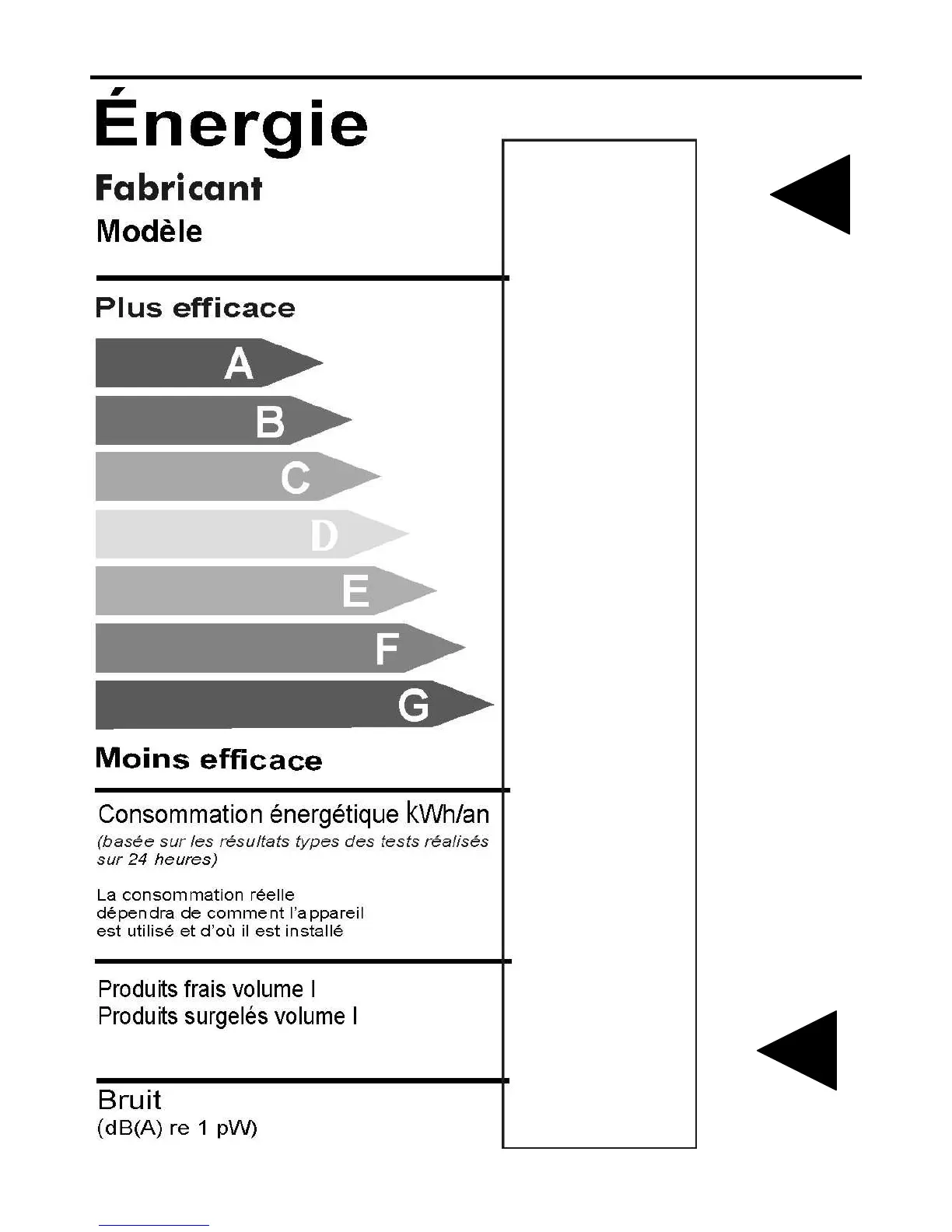 Vous pouvez coller la fiche énergétique fournie dans le sachet polybag