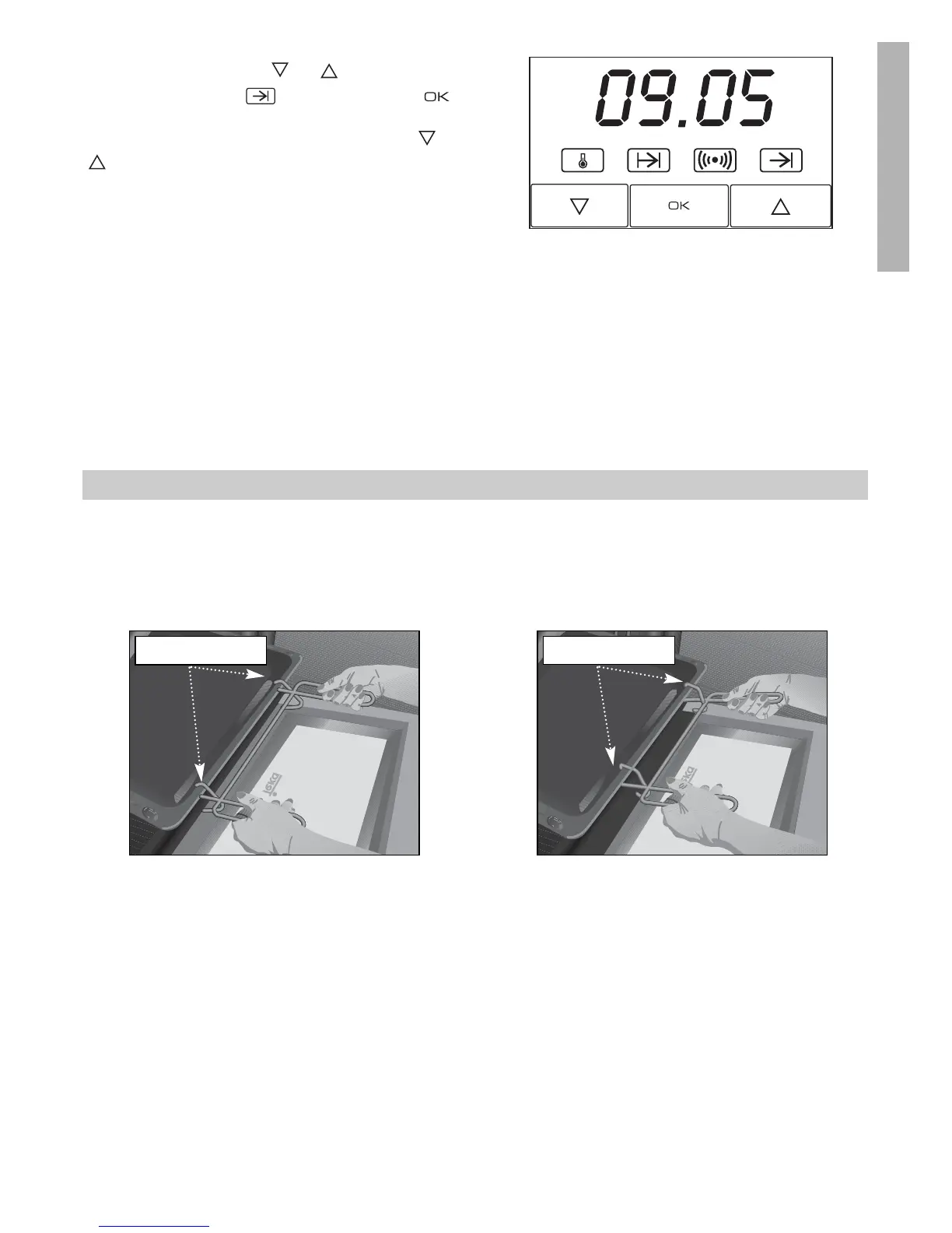 el momento de comprobar el estado del cocinado. Ver dibujos. Para manipular la bandeja fuera