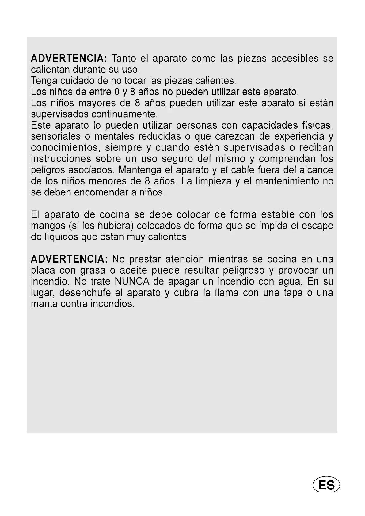 ADVERTENCIA: El aparato no está diseñado para usarlo con un