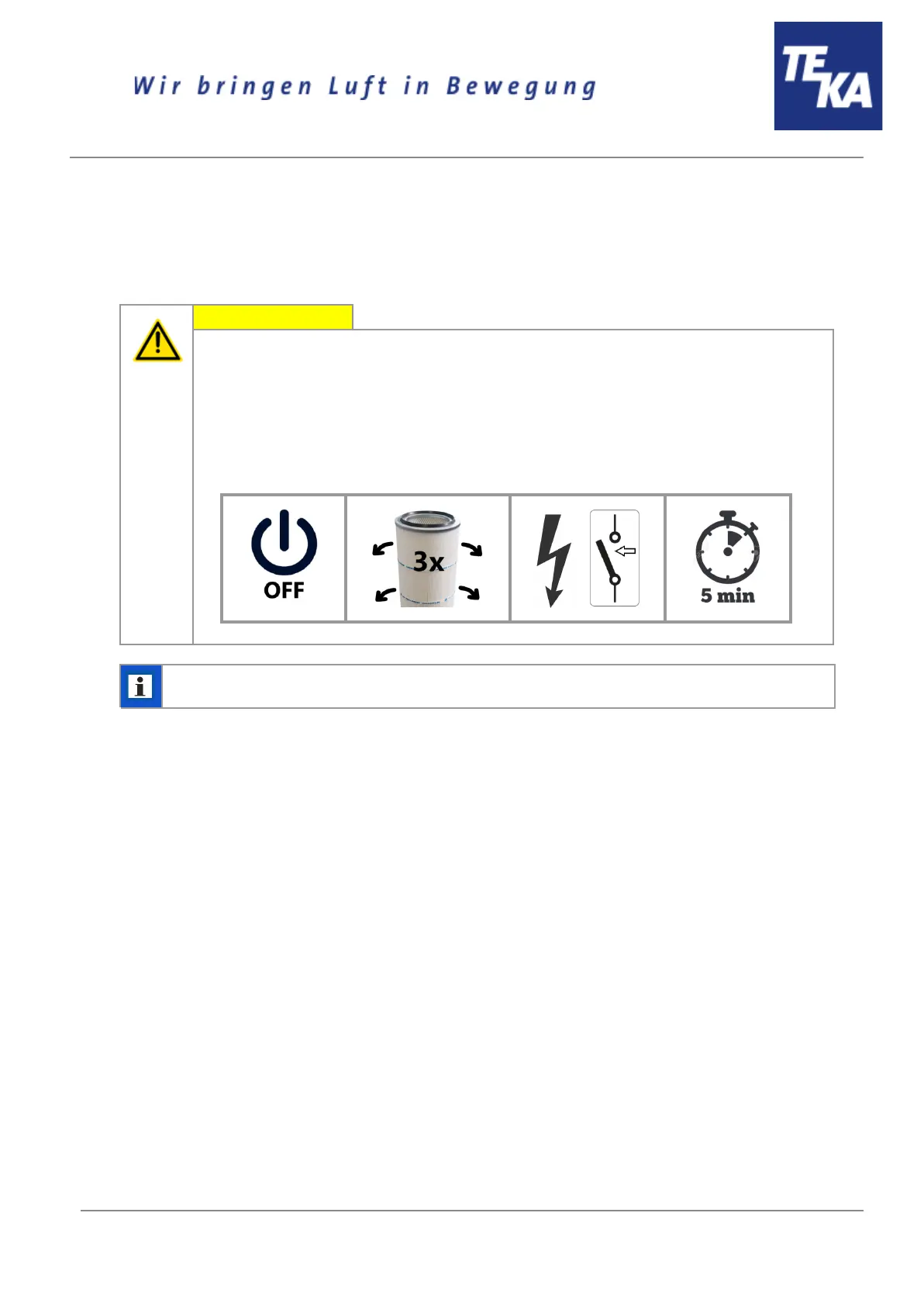 After the cleaning, disconnect the filter unit from the power supply and secure it against