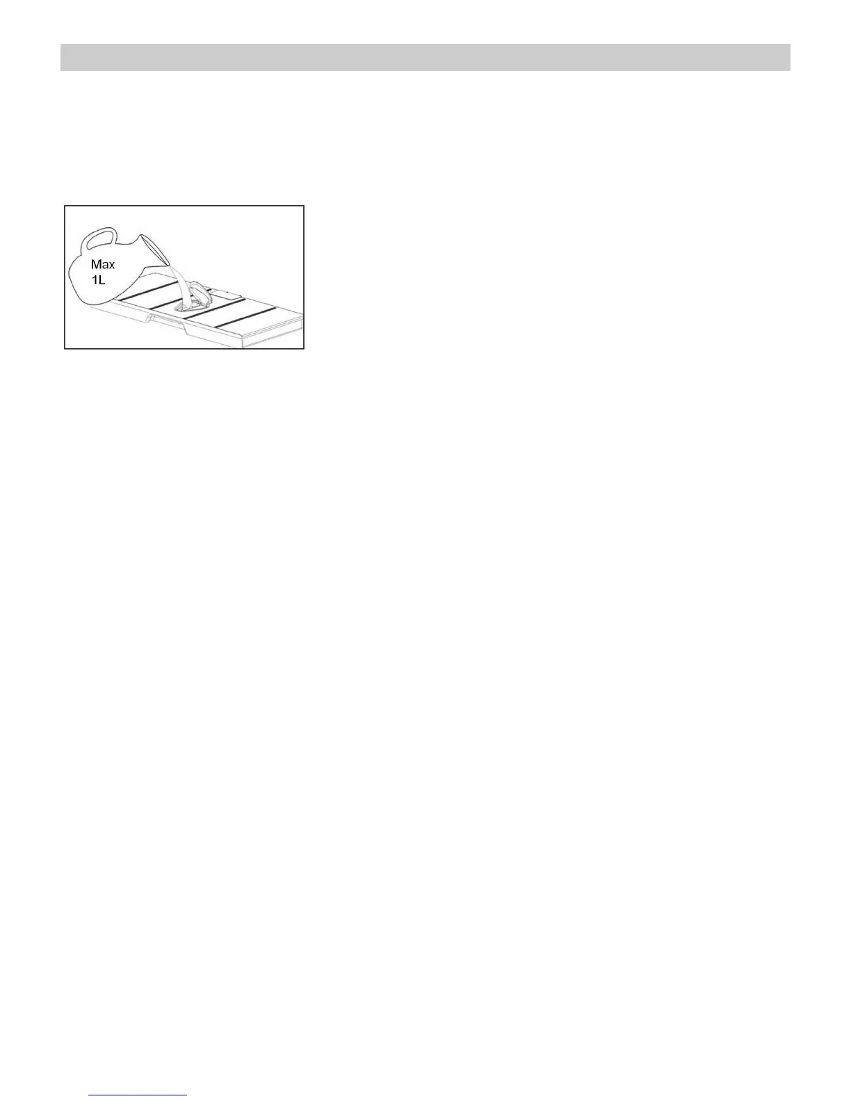 Fill the water tank up with 1L cold, fresh drinking