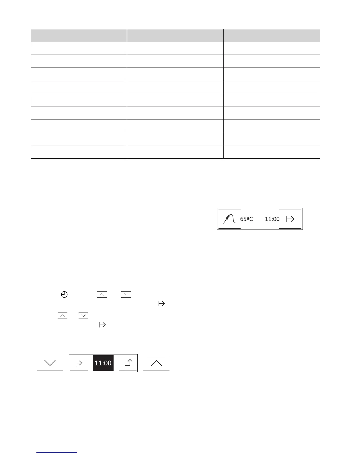 Cooking chart: suggested temperatures for cooking with the meat probe.