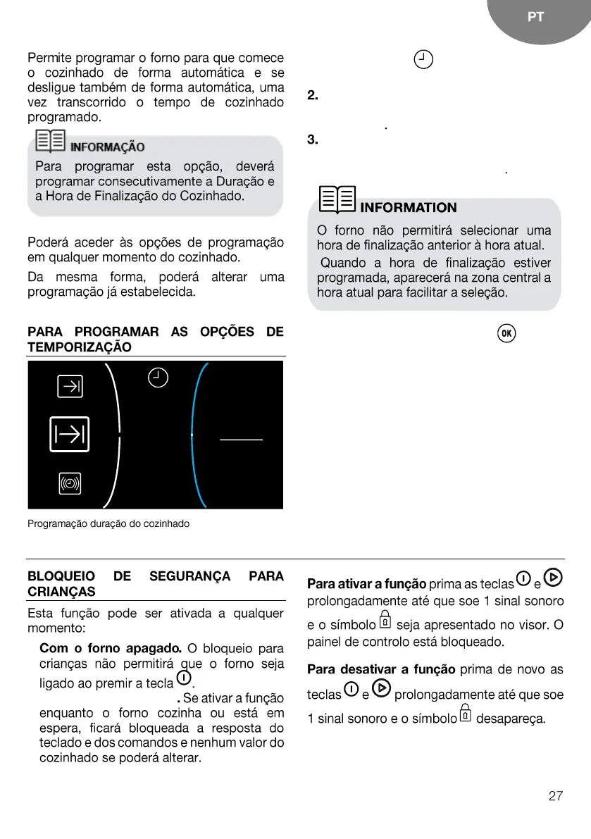 cozinhado. Poderá ver as temporizações