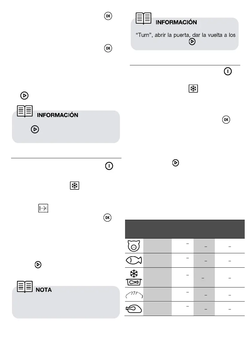 Descongelar por peso, indicando rangos de