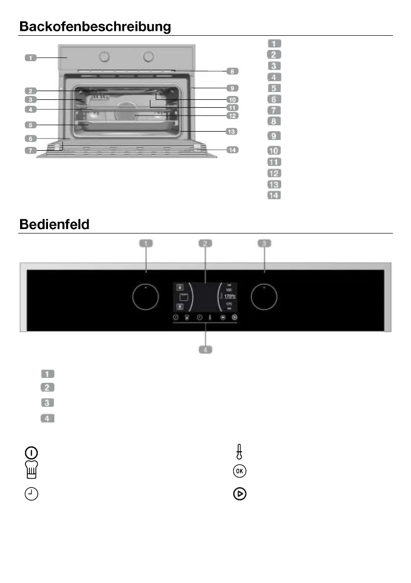 Schalter zur Navigation in den Menüs auf der linken Seite. Wahlschalter Garfunktionen