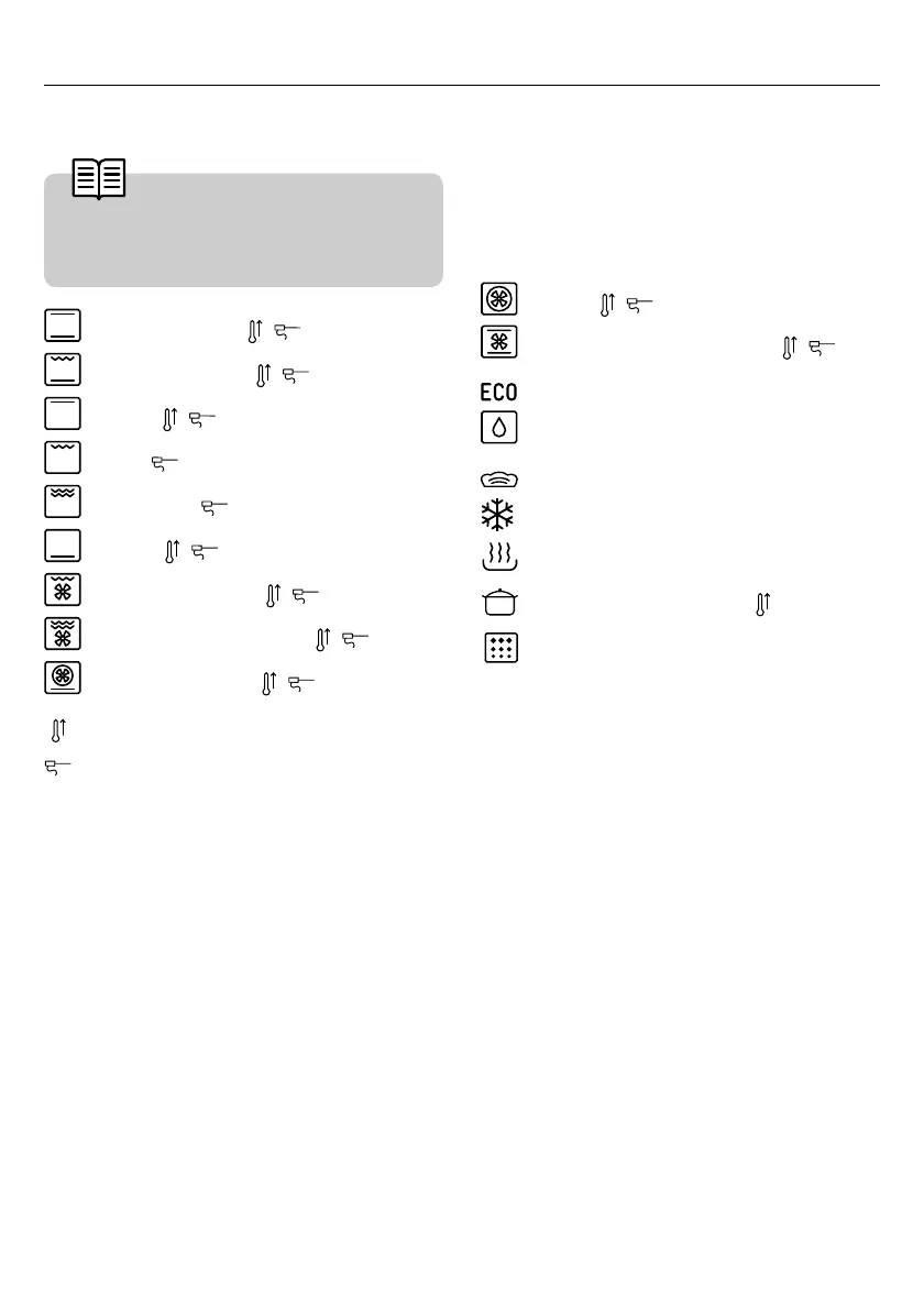 Via het bereidingshoofdmenu heeft u toegang tot de volgende ovenfuncties: