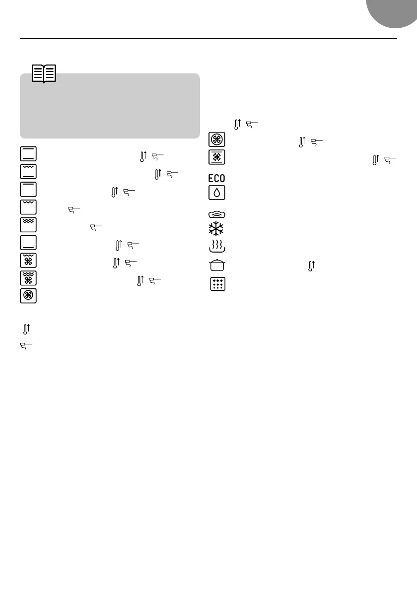 Από το κύριο μενού μαγειρέματος έχετε πρόσβαση στις ακόλουθες λειτουργίες του φούρνου: