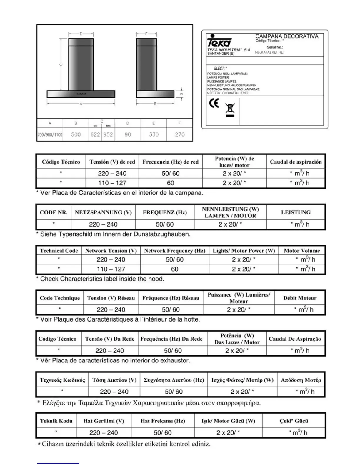Teka Kitchen hood - Product Data