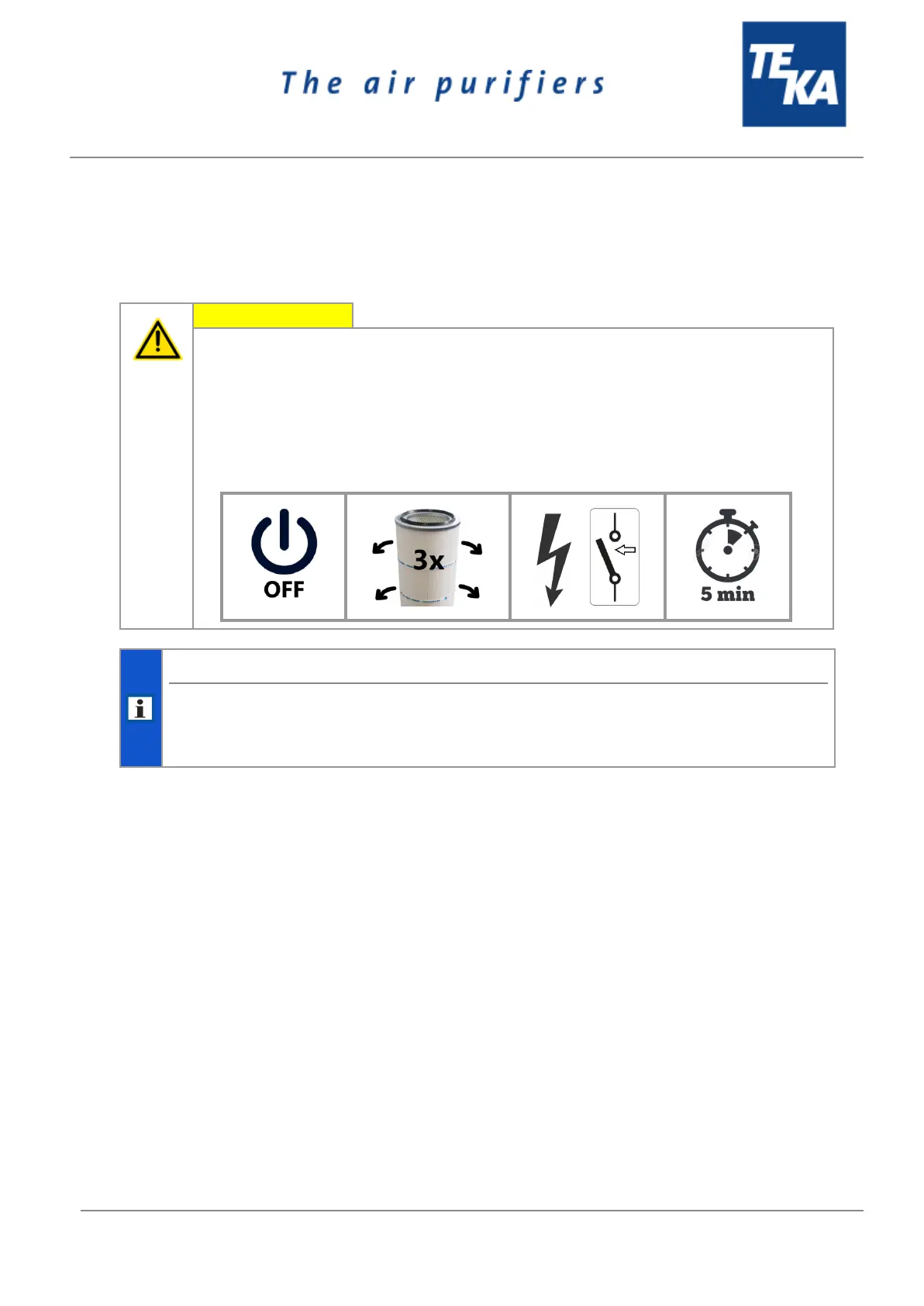 After the cleaning, disconnect the filter unit from the power supply and secure it against