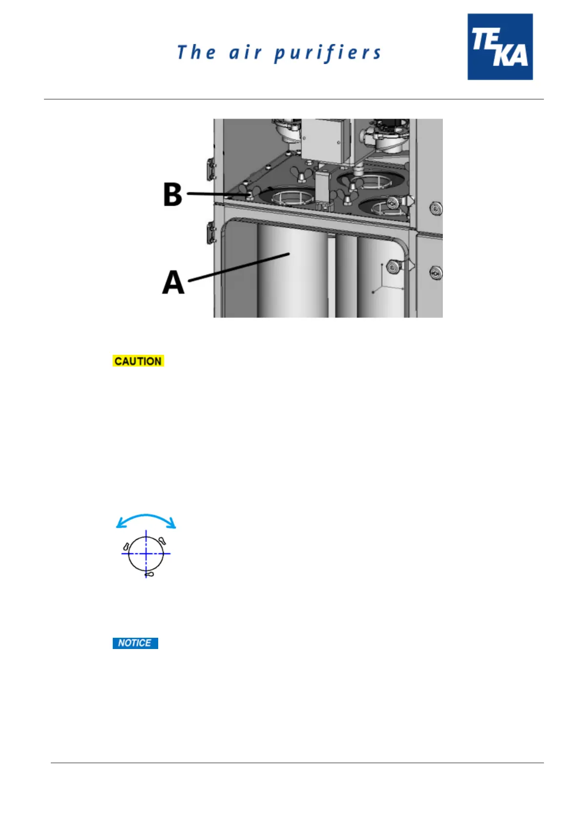 ● Unfasten the 3 thumb screws (B) of the filter cartridge by turning them clockwise.