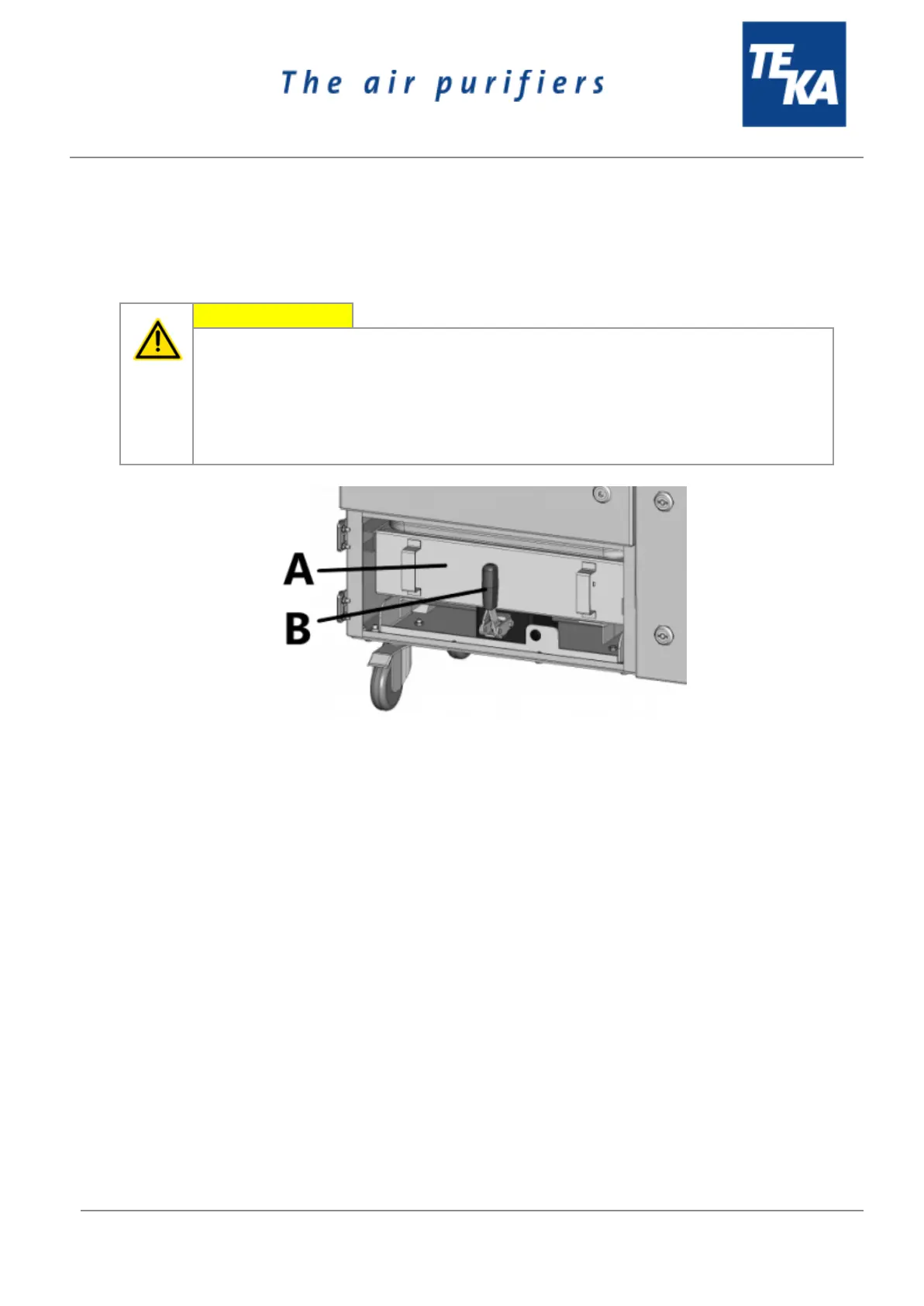● Resolve the clamping lever (B) of the dust collecting tank (A).
