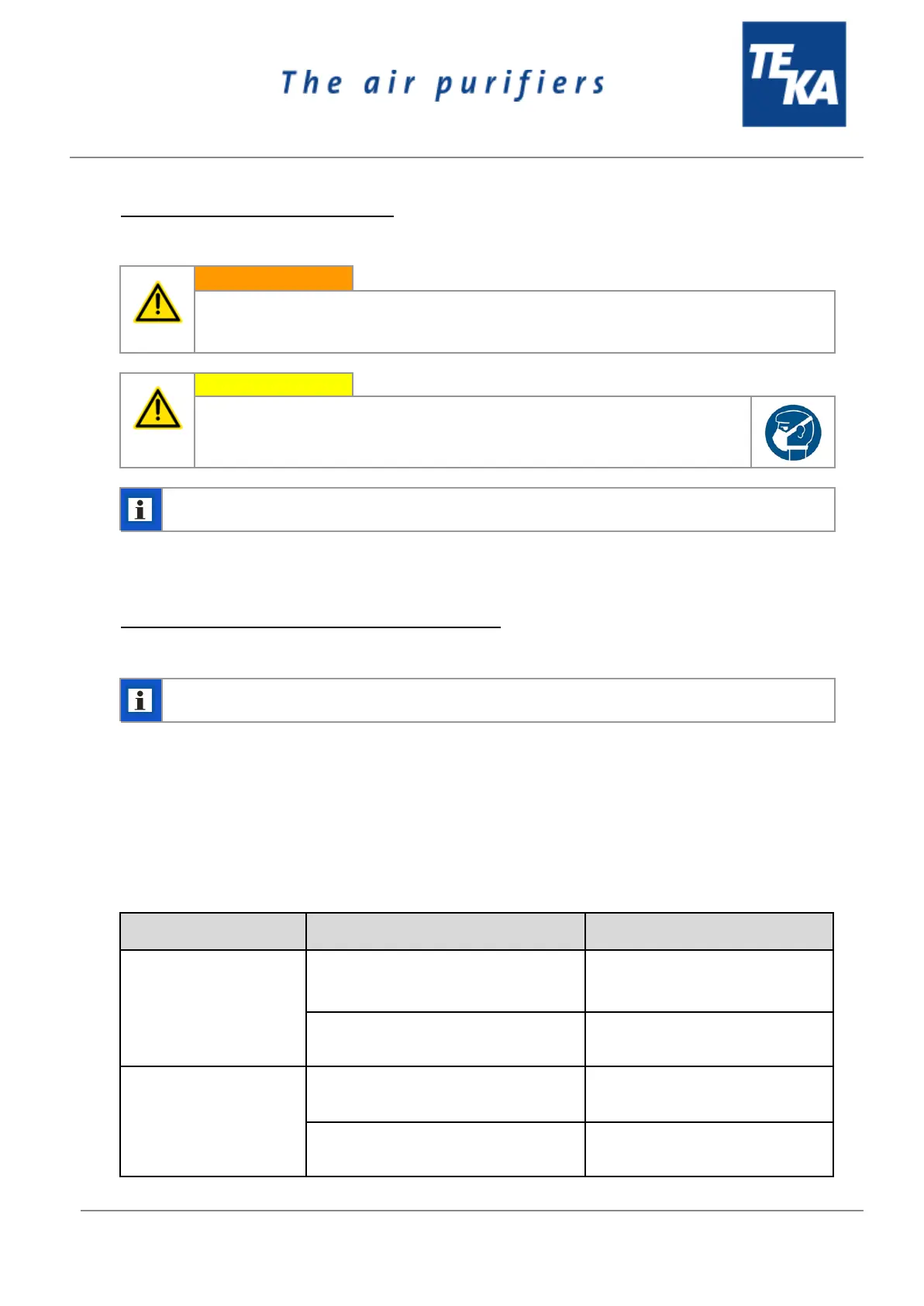 equivalent to the original state. Repairs may only be carried out by TEKA personnel or, after