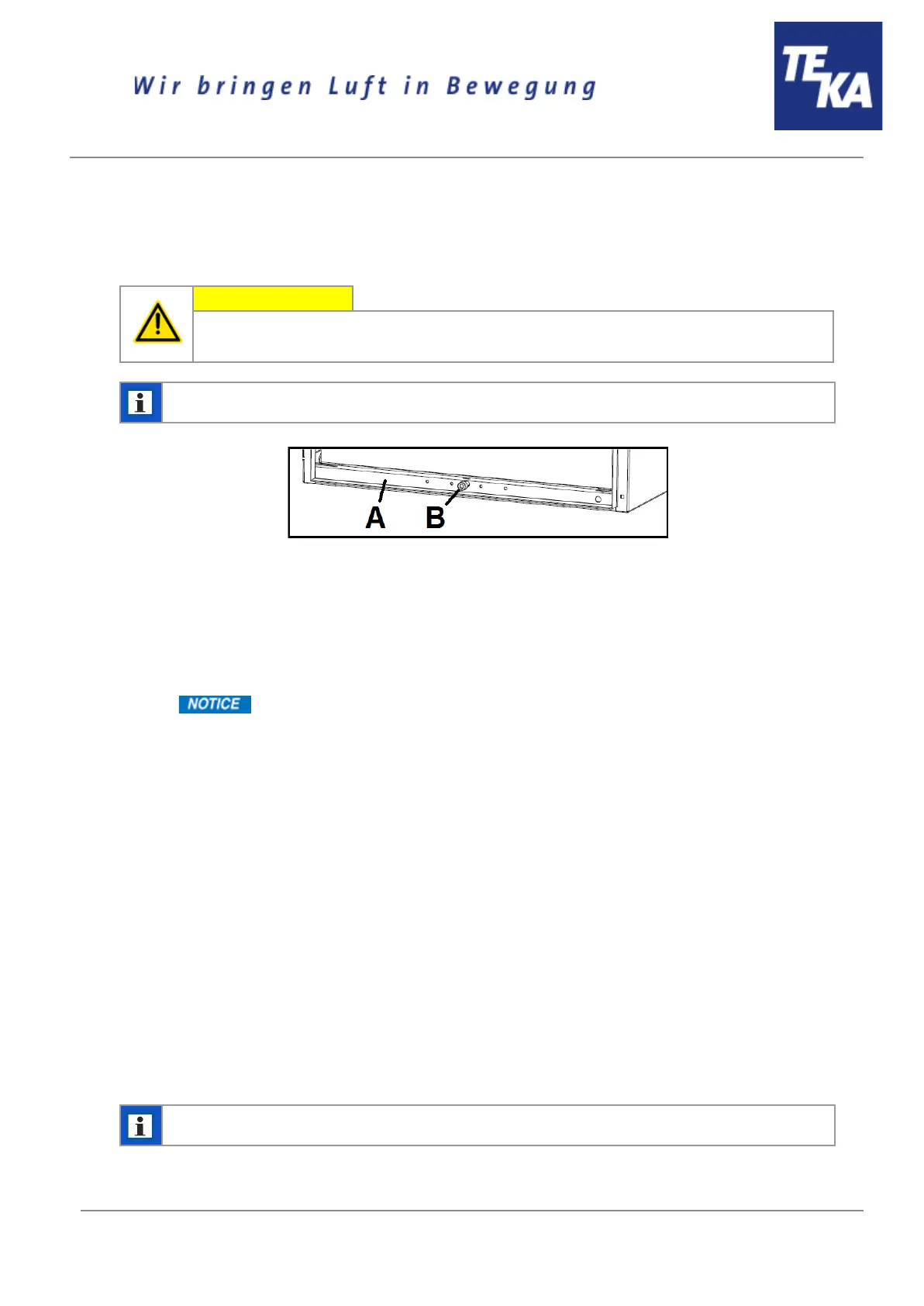 ● Lower the lifting device (A) by turning the clamping screw (B). Therefore, use the hexagon key
